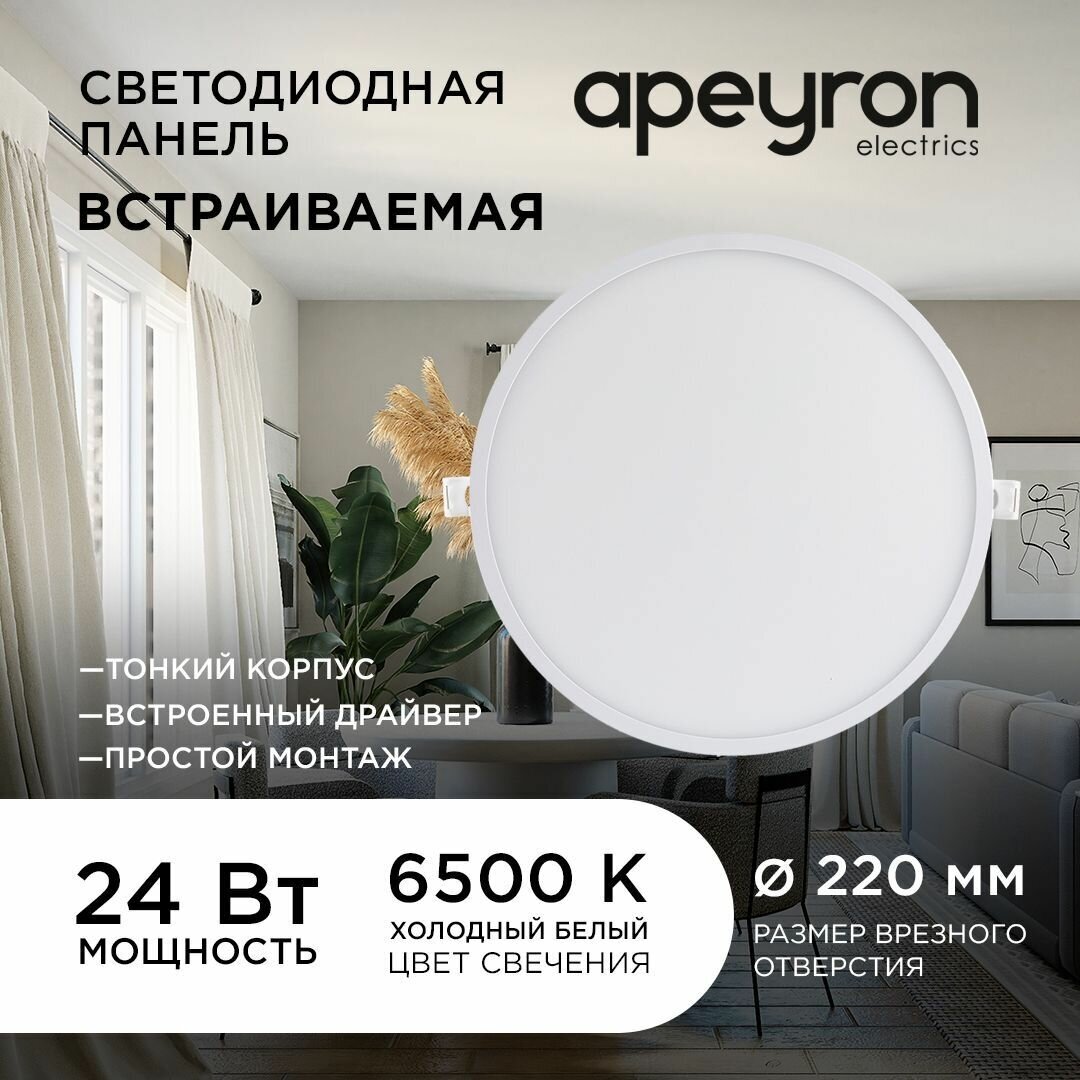 Светодиодная панель излучает световой поток в 1920Лм, потребляя при этом 24Вт, что в итоге дает энергоэффективность 80Лм/Вт. Цветовая температура 6500К повышает концентрацию, настраивает на рабочий лад, поэтому мы рекомендуем использование холодного цвета свечения в местах, требующих повышенной работоспособности, внимания и точности. Встроенный драйвер снимет вопрос о том, как его разместить, и облегчит монтаж светильника. Круглая форма корпуса позволит создать дизайн с оттенками вечности, тайны и магии. Эта панель по способу монтажа является встраиваемой, а благодаря малой высоте драйвера позволит сделать пространство за потолком минимальным и подарит Вам больший объем помещения, ведь мы ценим каждый сантиметр свободного пространства наших клиентов. У данного светильника диаметр врезного отверстия 208 мм, а высота драйвера 17мм.