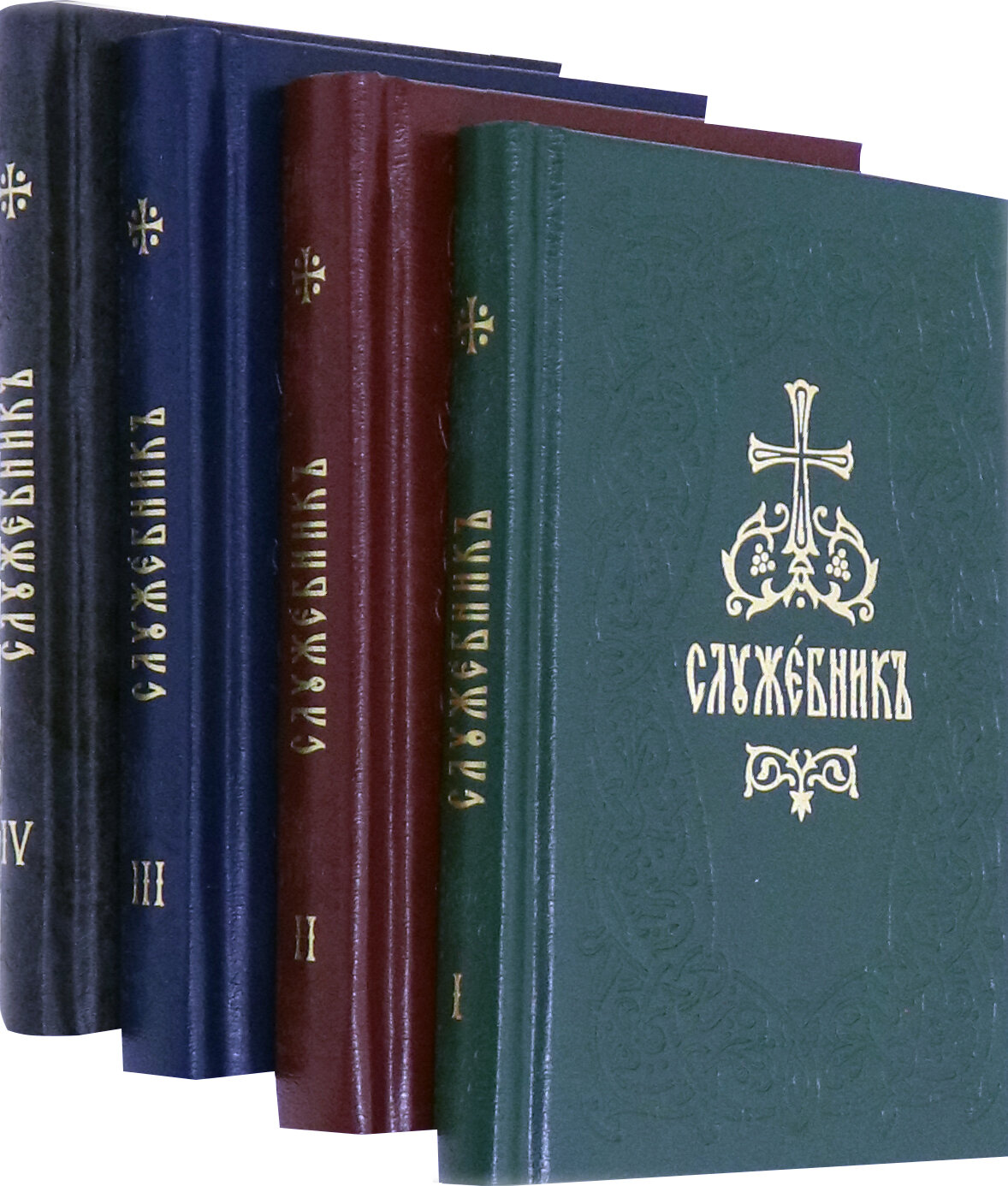 Служебник в 4 томах карманного формата в твердом переплете с блинтовым тиснением и с тиснением золотой фольгой. В 1-й том издания вошло последование Вечерни и Утрени. 2-4-й тома включают чинопоследования трех основных служб Православной Церкви - Литургии святителя Иоанна Златоустого, Литургии святителя Василий Великого и Литургии Преждеосвященных Даров.
