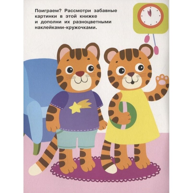 Приклеивая на картинки в этой книге яркие разноцветные многоразовые наклейки-кружочки, ваш малыш сможет повторять названия цветов и предметов, развивать мелкую моторику и усидчивость.