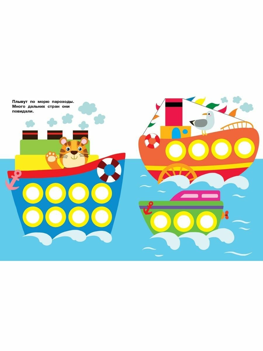 При покупке ориентировалась на обложку и думала, что вся книга будет с рисунками транспорта. Однако из этой категории всего 2 рисунка с поездом и корабликами. Остальные иллюстрации с птицами, лягушками, ягодами. Так что можно покупать или дарить и мальчику, и девочке.