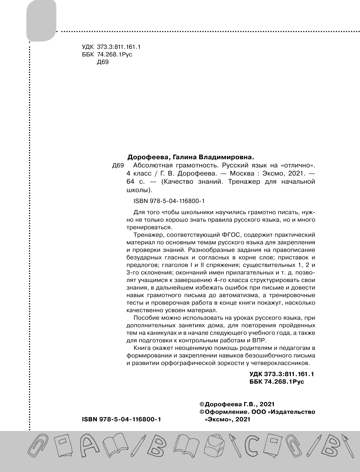 Абсолютная грамотность. Русский язык на «отлично». 4 класс (Дорофеева Галина Владимировна); ООО "Издательство "Эксмо", 2021