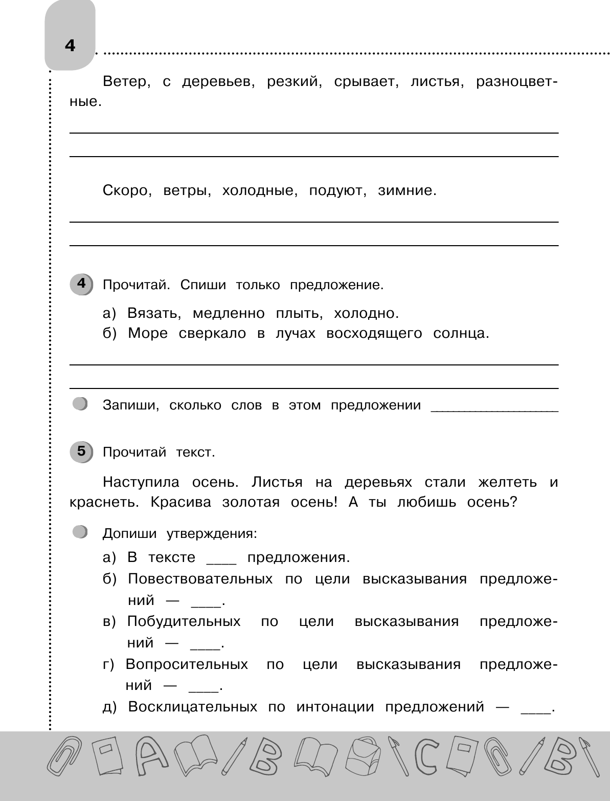Пособие можно использовать на уроках русского языка, при дополнительных занятиях дома, для повторения пройденных тем на каникулах и в начале следующего учебного года, а также для подготовки к контрольным работам и ВПР.