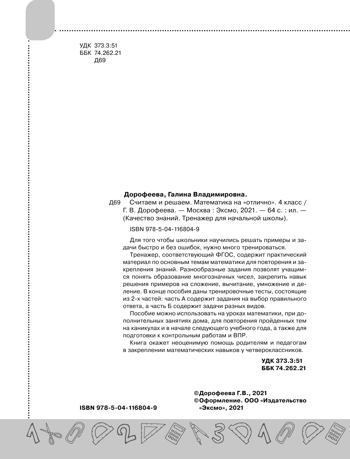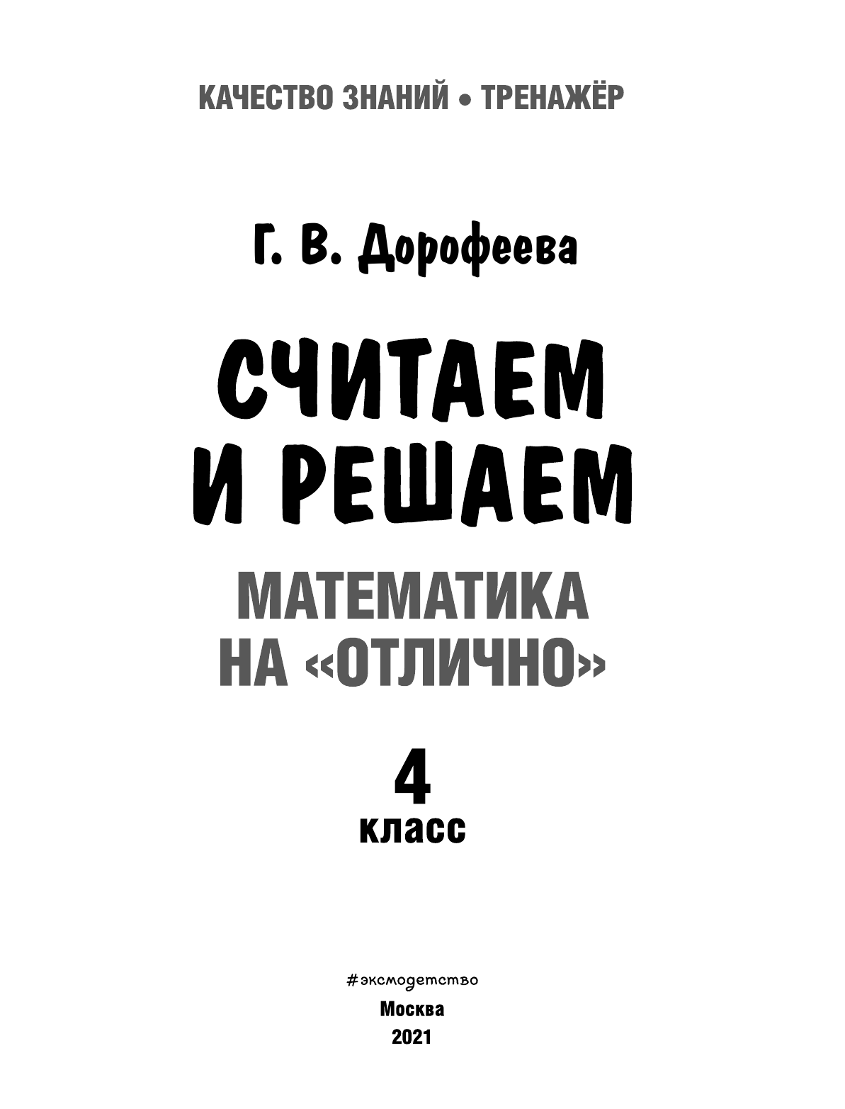 Считаем и решаем. Математика на «отлично». 4 класс (Дорофеева Галина Владимировна); ООО "Издательство "Эксмо", 2021