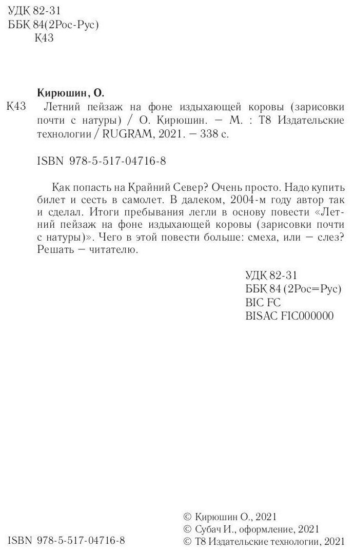 Сервис сравнения цен СкидкаГИД предлагает сравнить цены на товар «Книга: Летний пейзаж на фоне издыхающей коровы (Кирюшин Олег); RUGRAM_Publishing, 2021»