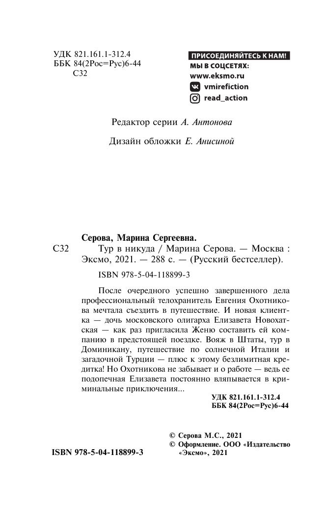 Книга: Тур в никуда (Марина Серова); Эксмо, Редакция 1, 2021
