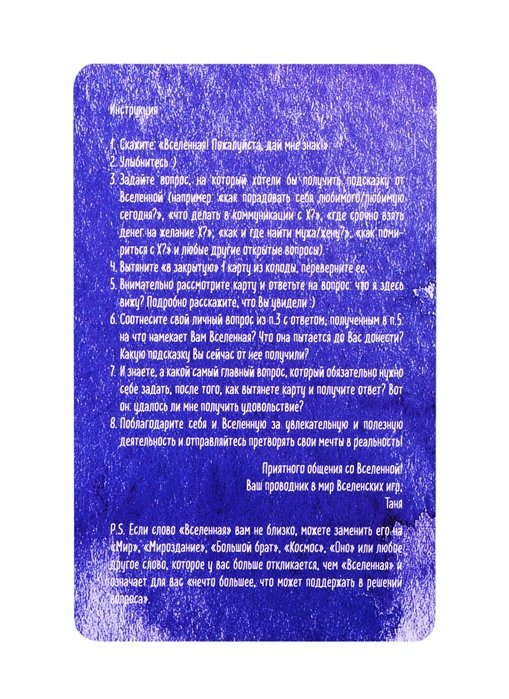 К тому же заявлено, что в колоде "40 карт, которые помогут заглянуть в будущее ". По факту в колоде 39 рабочих карт, одна - с инструкцией.