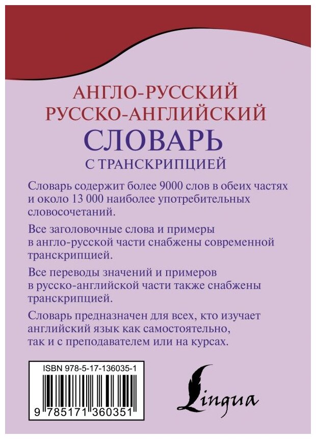 Все заголовочные слова и примеры в англо-русской части снабжены современной транскрипцией.