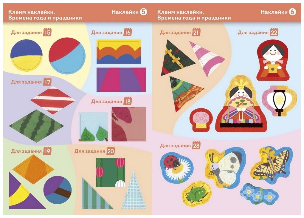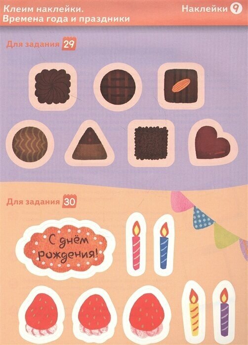 Задания на дополнение картинки деталями (№ 22-30). Здесь используются фигурные наклейки.