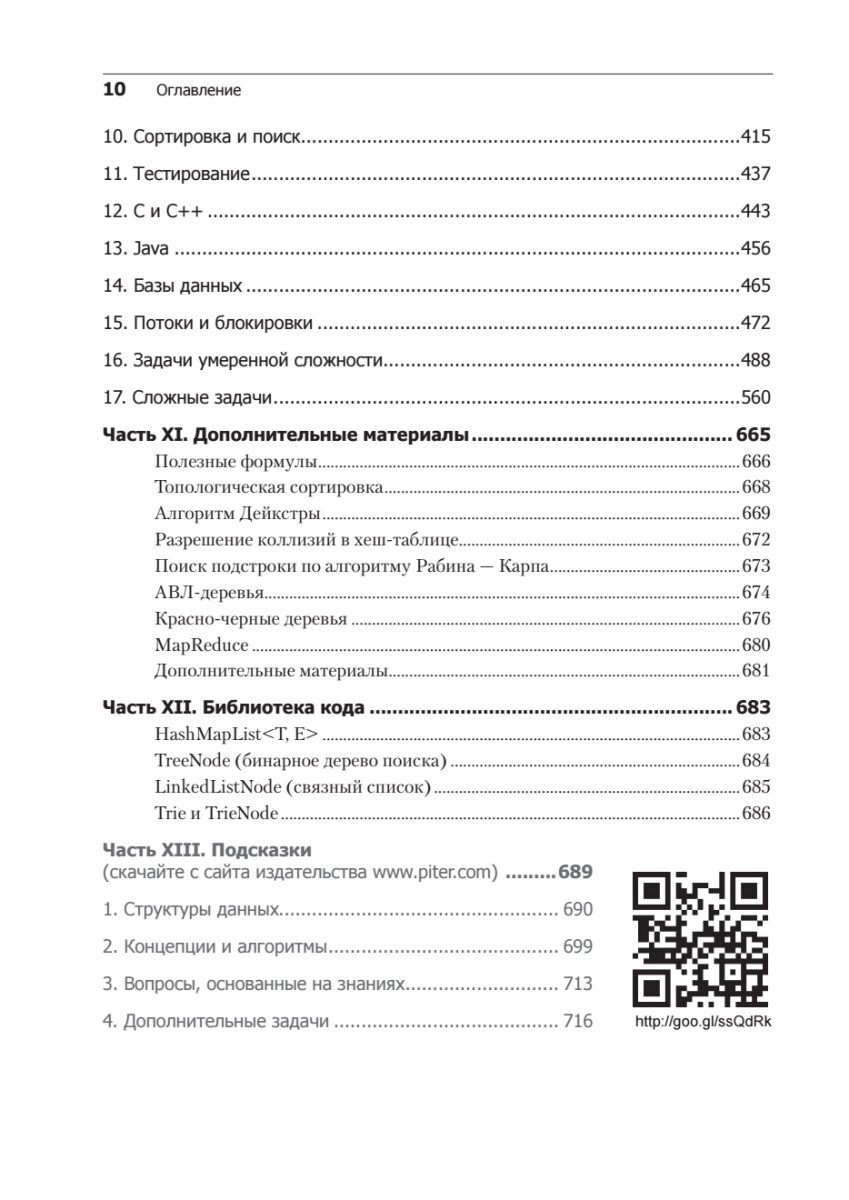 Очередное собеседование обернулось разочарованием… в очередной раз. Никто из десяти кандидатов не получил работу. Может быть, «экзаменаторы» были слишком строги? Увы, для поступления на работу в ведущую IT-компанию академического образования недостаточно. Учебники — это замечательно, но они не помогут вам пройти собеседование, для этого нужно готовиться на реальных вопросах. Нужно решать реальные задачи и изучать встречающиеся закономерности. Главное — разработка новых алгоритмов, а не запоминание существующих задач. «Карьера программиста» основана на опыте практического участия автора во множестве собеседований, проводимых лучшими компаниями. Это квинтэссенция сотен интервью со множеством кандидатов, результат ответов на тысячи вопросов, задаваемых кандидатами и интервьюерами в ведущих мировых корпорациях. Из тысяч возможных задач и вопросов в книгу были отобраны 189 наиболее интересных и значимых. Шестое издание этого мирового бестселлера поможет вам наилучшим образом подготовиться к собеседованию при приеме на работу программистом или руководителем в крупную IT-организацию или перспективный стартап. Основную часть книги составляют ответы на технические вопросы и задания, которые обычно получают соискатели на собеседовании в таких компаниях, как Google, Microsoft, Apple, Amazon и других. Рассмотрены типичные ошибки, а также эффективные методики поготовки к собеседованию. Используя материал этой книги, вы с легкостью подготовитесь к устройству на работу в Google, Microsoft или любую другую ведущую IT-компанию.