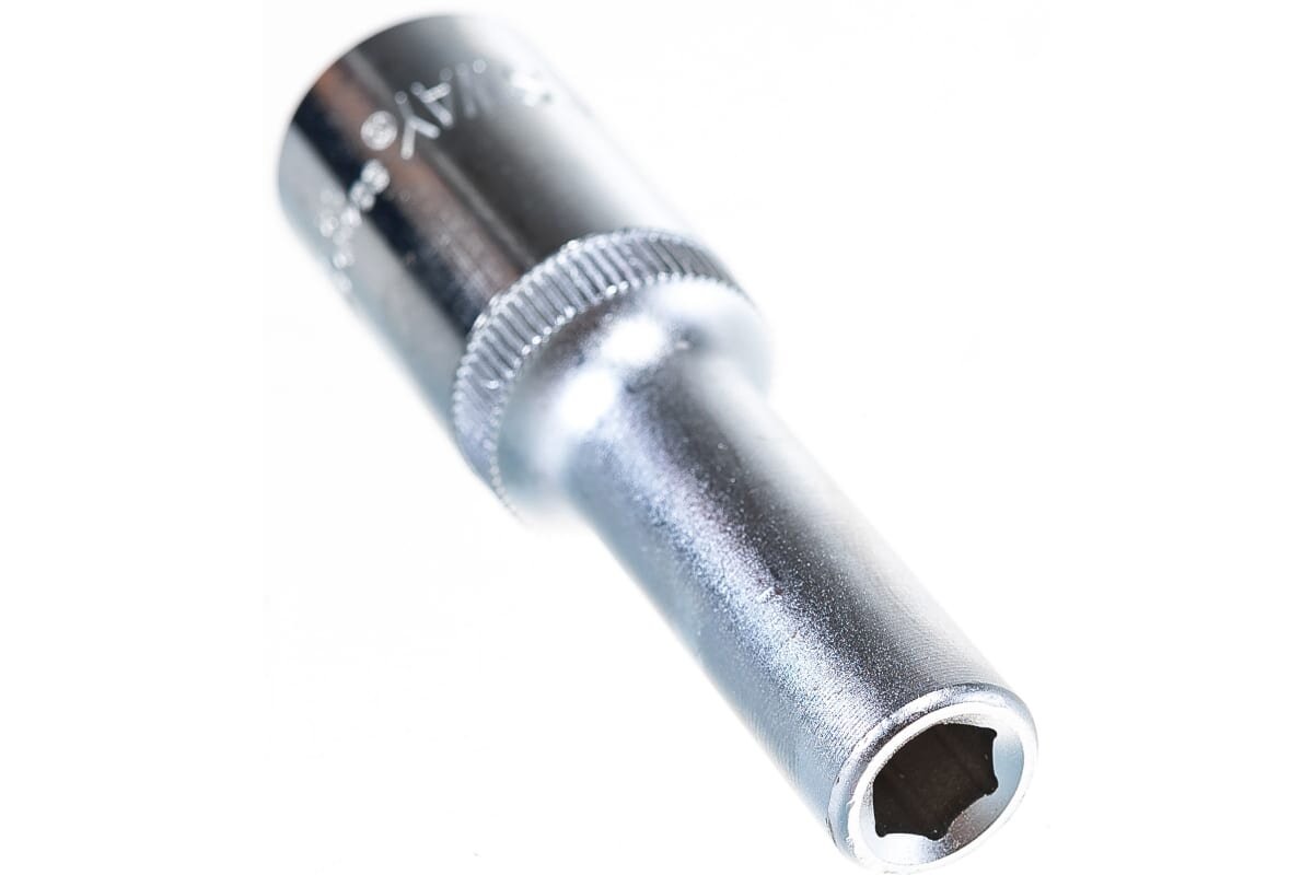Шестигранная торцевая головка увеличенной длины. Применяется при работе с крепежом на относительно высоких шпильках и заглубленных деталях. Торцевая головка выполнена из хромованадиевой стали, имеет накатку и полуматовое хромоникелевое покрытие. Изделие изготовлено по стандарту din 3124, соответствует требованиям госта 25604-83.