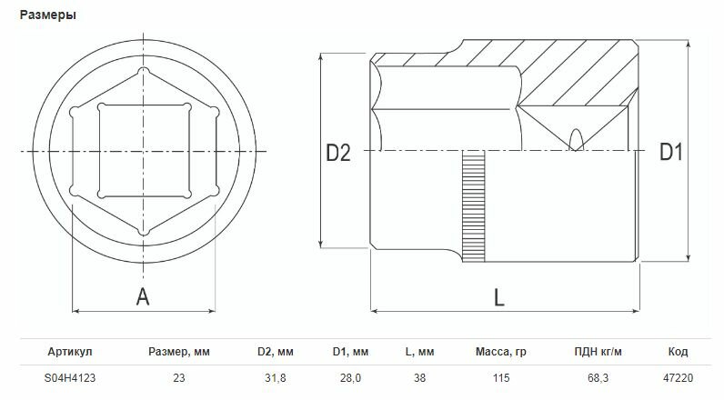 | Размер головки | 23 |
