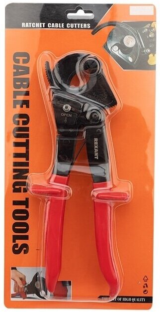 Инструмент REXANT предназначен для обрезки медных и алюминиевых кабелей сечением в диапазоне 32.0-240 мм?.