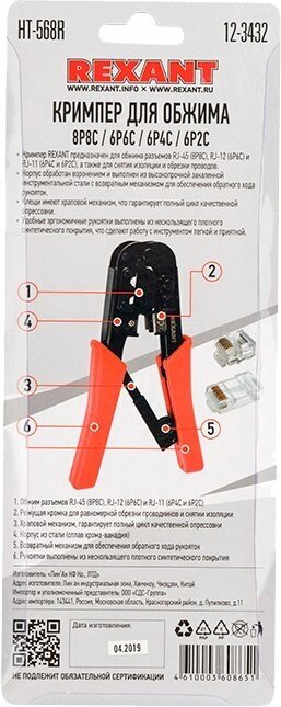 - Кримпер для обжима 8P 6P RJ 45 RJ 11 REXANT HT 568R 12 3432 1 HD