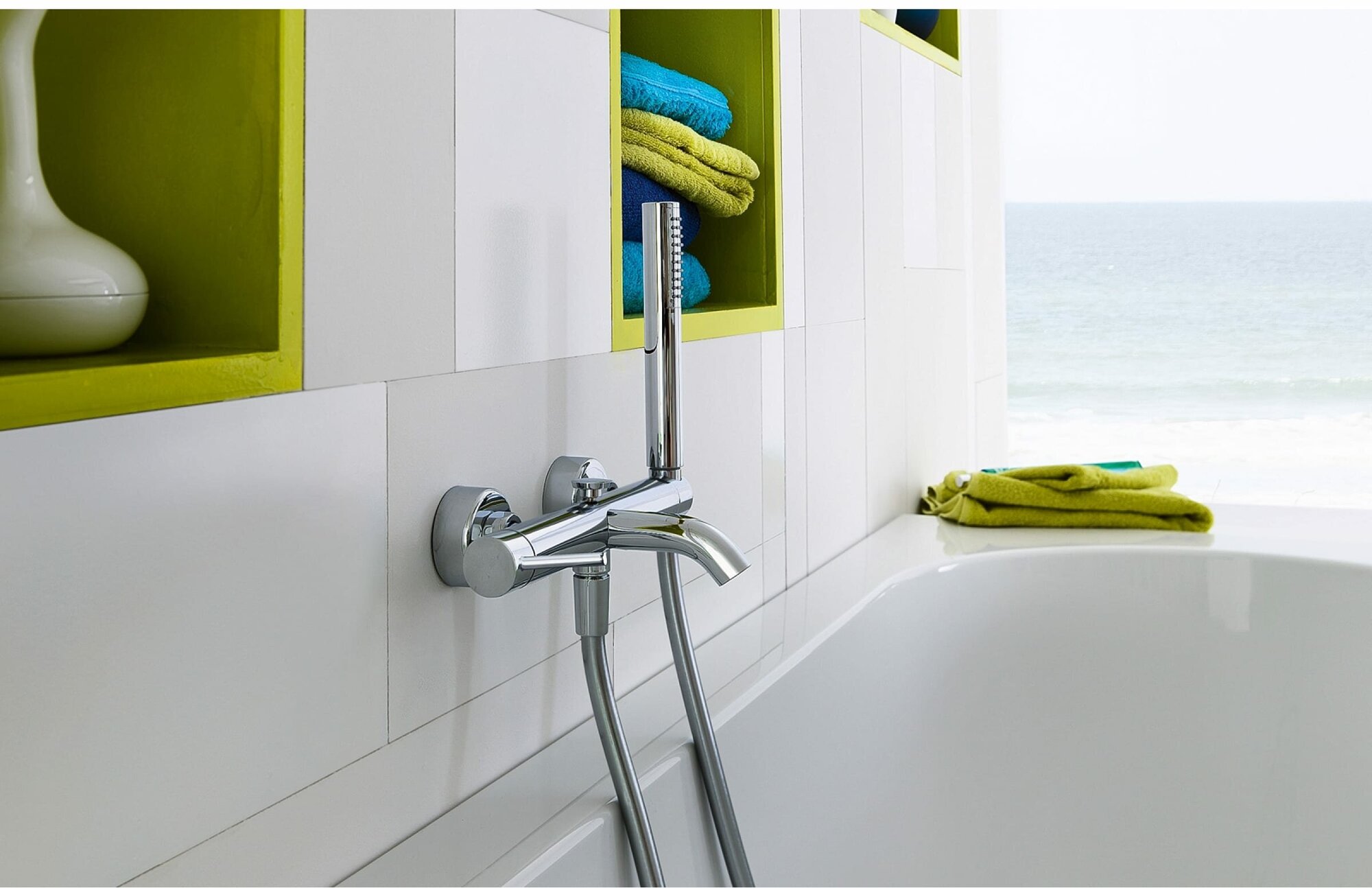 | Назначение смесителя | для ванны и душа, Тип управления смесителя: однорычажный, Цвет покрытия: хром, Стиль смесителя |
