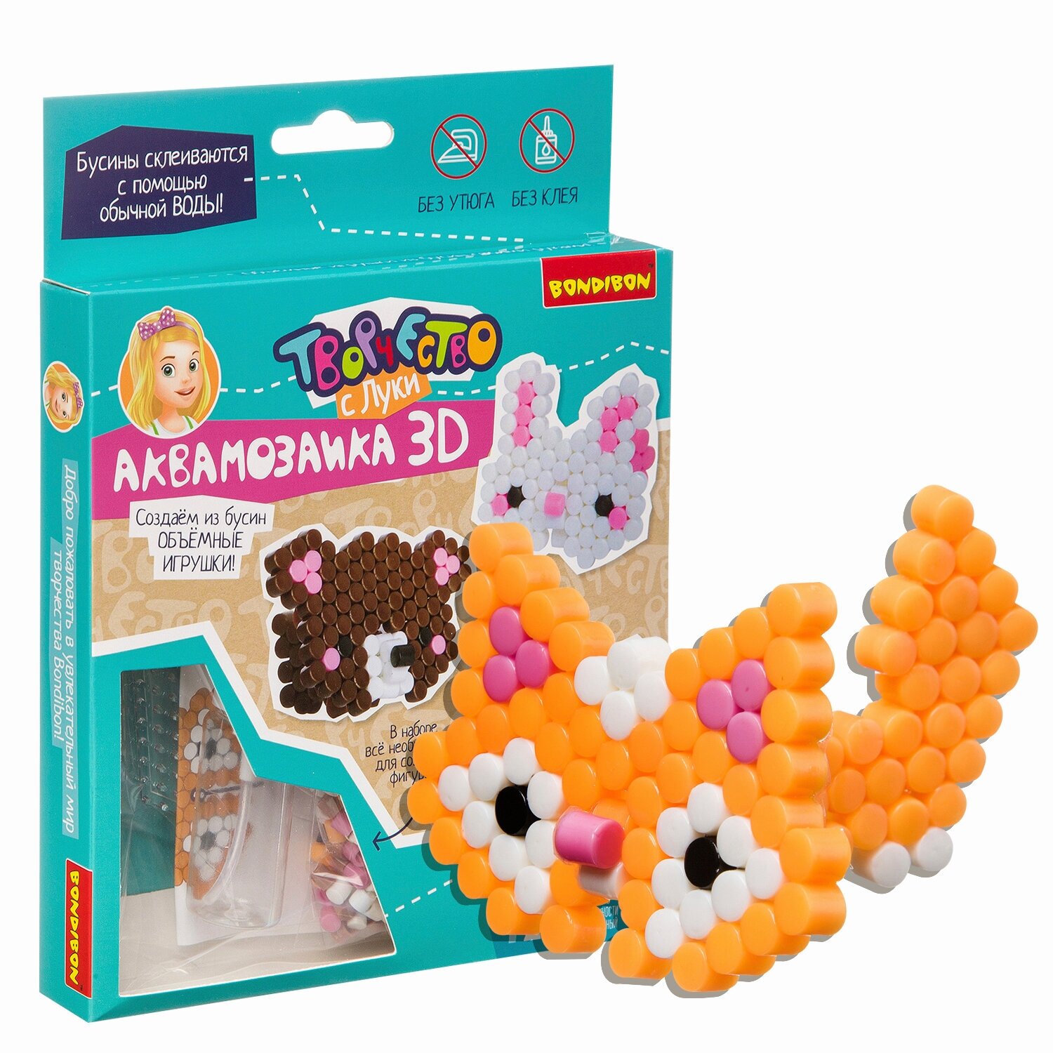 Набор для творчества "Аквамозаика 3D. Медведь заяц лиса" Bondibon Набор для творчества Аквамозаика 3D Медведь, заяц, лиса