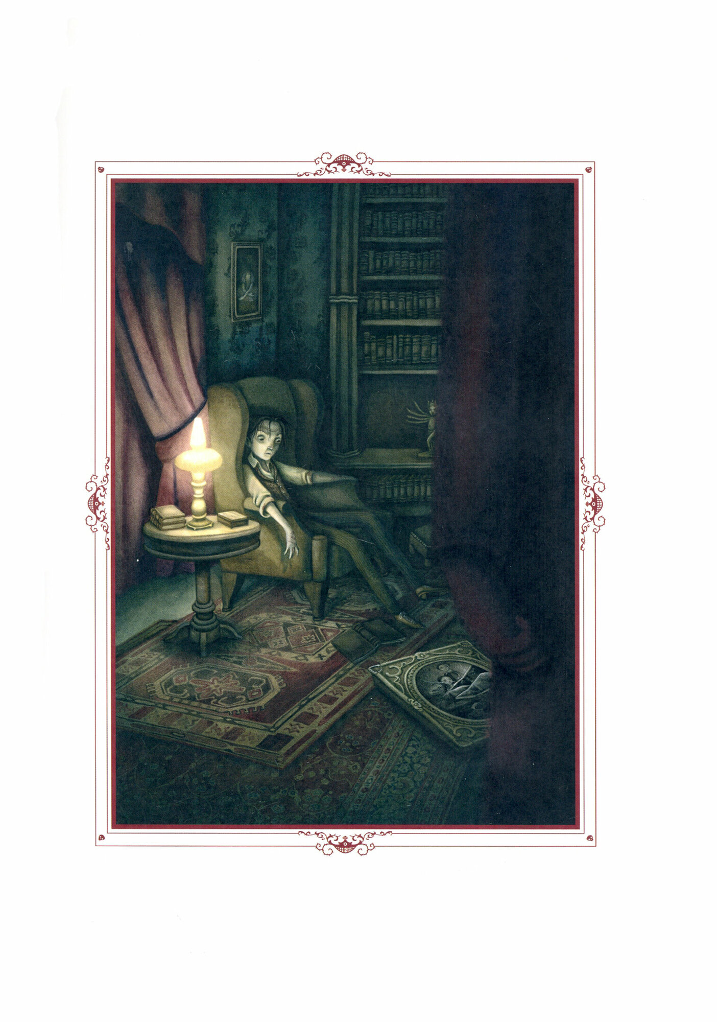 Иллюстрации Лакомба - вот что привлечет людей к этому изданию. Его работы с литературными произведениями давно уже заслужили почет и уважение во всем мире. Он рисует в своем, очень похожем на эстетику Тима Бартона стиле. Все его работы прекрасно ложатся на канву первоисточника. В случае с По, манера Лакомба, немного мультипликационная, отлично слилась с выбранными рассказами и показывает не только события, описанные автором, но и мир в котором живут герои По.