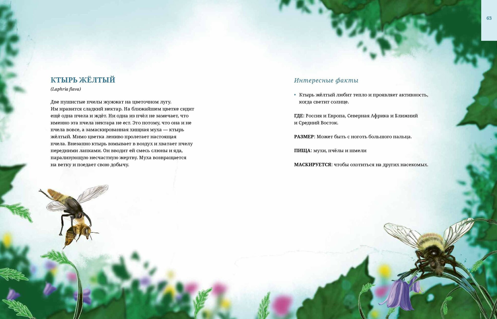 Купила всю серию (Синий Кит, Под Арктическим льдом и Животные - невидимки). Все книги очень понравились. Синий кит самая любимая. Формат большой, рисунки яркие, на каждой странице новое насекомое. Много новой информации. Но эта книга из трёх понравилась меньше всего, т. к. у меня не было "Ах". Поставила 8 звёзд, т к. мне кажется, что можно было сделать рисунки круче, например так их замаскировать на странице,чтобы сложно было найти или нарисовать большого размера. На, странице осталось много свободного места. И есть, кстати, непонятные для меня ответы на странице 56-57 написано, что там 3 горбатки, но я вижу 4, Толи я неправильно смотрю, Толи там ошибка.