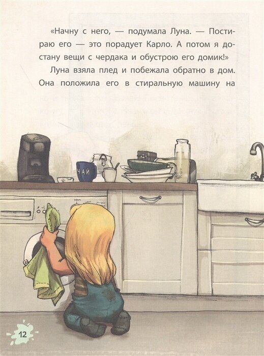 В истории «Чей дом лучше?» Луна и Карло обживаются на новом месте и будут обставлять комнаты друг друга. Конечно же, каждый из них обставит комнату другого так, как было бы комфортно самому – в этом-то и прелесть истории. Как по мне – редко кому удаётся донести так ненавязчиво и доходчиво поднять тему эмпатии и необходимости думать в подобных случаях не о себе. Параллельно проносится какое-то невероятное множество других моментов: севшее после стирки одеялко (жизненно!), страх темного подвала, обиды и взаимопонимания, «тихое одеяло», сказка про космическую панду».