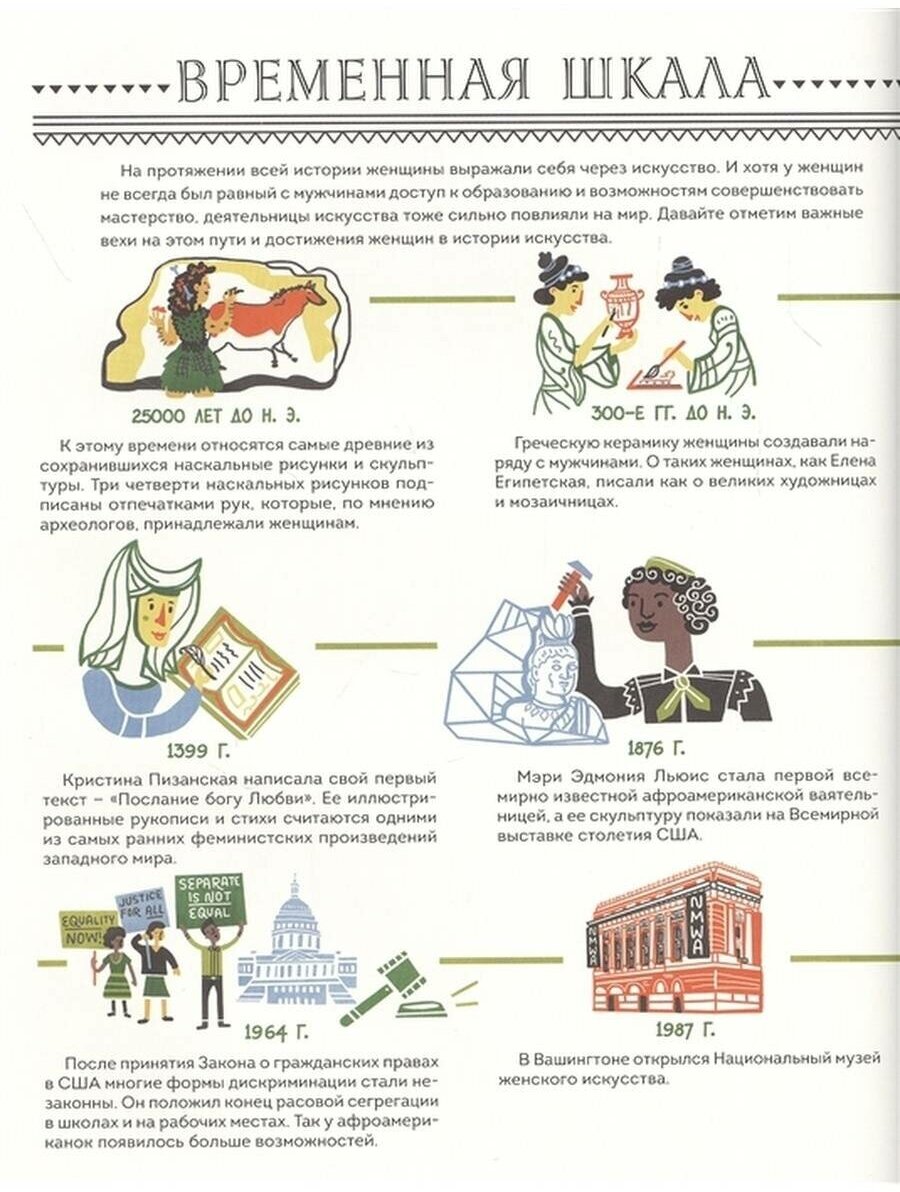 Богато иллюстрированная книга знаменитого дизайнера Рэйчел Игнатовски посвящена 50 выдающимся женщинам искусства древнего и современного мира. Героини книги - художницы Фрида Кало и Джорджия О'Киф, писательница Беатрис Поттер и многие другие бесстрашные женщины, проложившие путь для новых поколений женщин-художниц, скульпторов и писательниц.