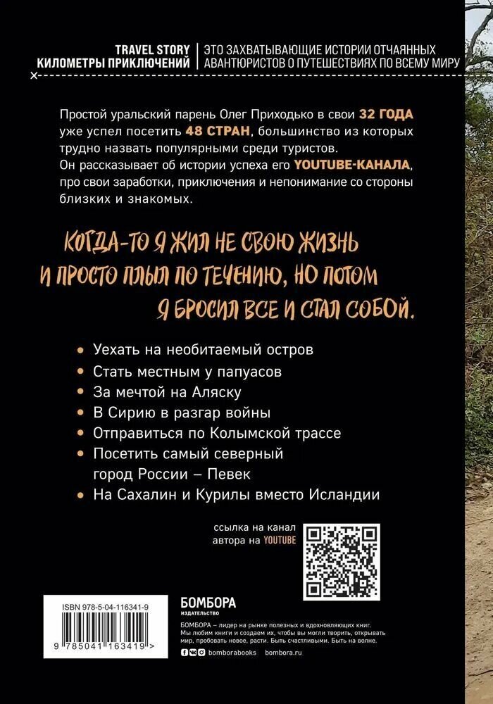 Для меня путешествие по "диким и нетуристическим местам" ограничивается обычно чтением о таких местах, потому что человек я простой, но читать о безбашенных путешественниках - настоящее наслаждение! Такие книги заставляют меня вспоминать, какие люди разные, и насколько разную жизнь мы живем. Олег действительно вдохновляет на свершения, но у путешественников это в крови - вдохновлять читателя.