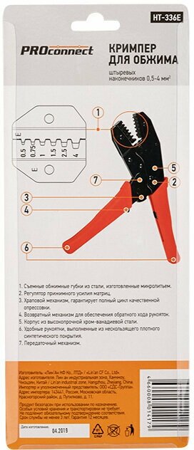 Тип товара: Кримпер для обжима штыревых наконечников