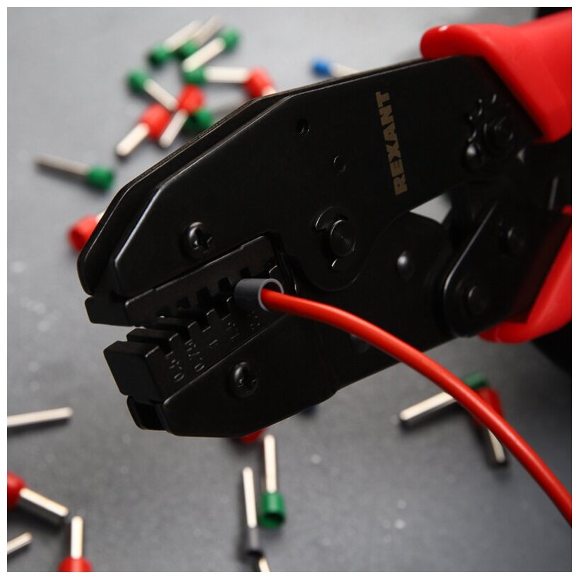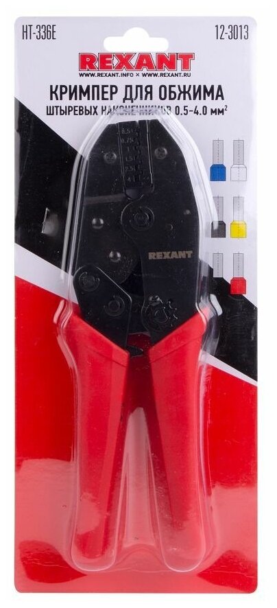 Кримпер REXANT для обжима штыревых наконечников предназначен для обжима неизолированных автоклемм 0.5-4.0 мм?.