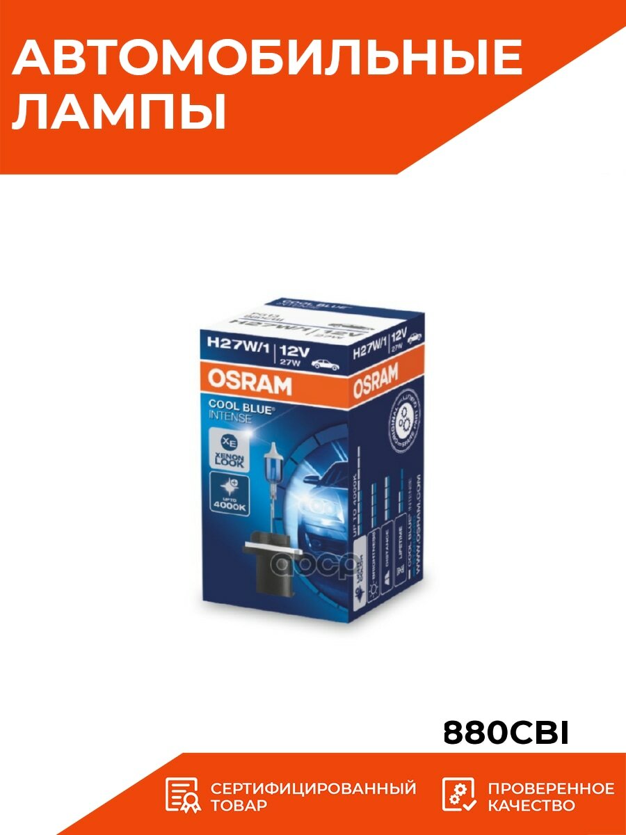 Лампа автом.галог. Osram H27W/1 12В 27Вт (упак.:1шт) 4200K 880CBI