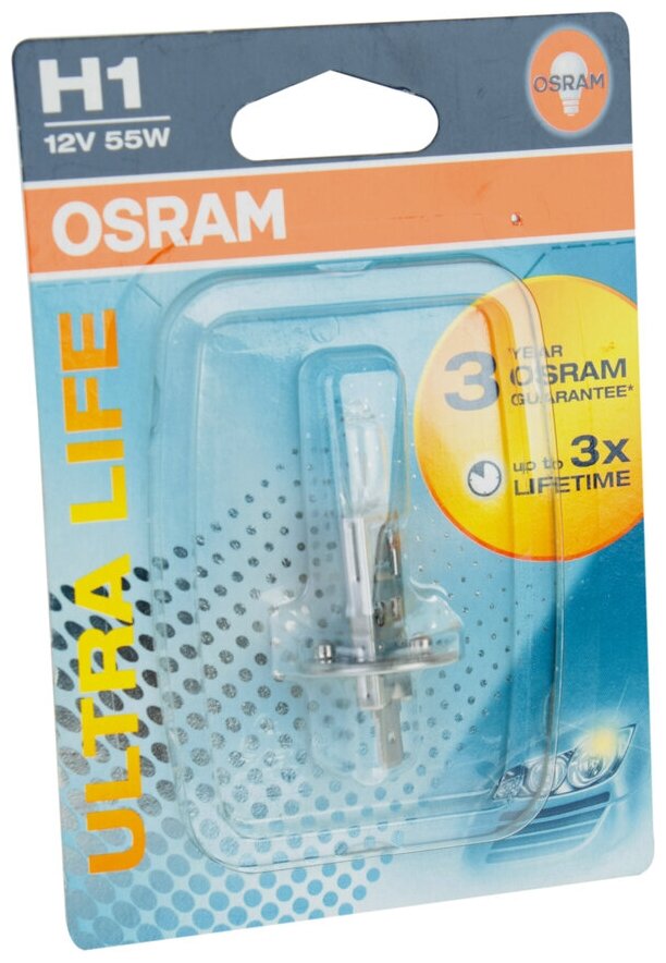 Автомобильные лампы головного света OSRAM ULTRA LIFE не знают себе равных, когда речь заходит о долговечности. Они впечатляют своим сроком службы: по сравнению по стандартными галогенными лампами они служат до четырех раз дольше, что эквивалентно 100000 км пробега.