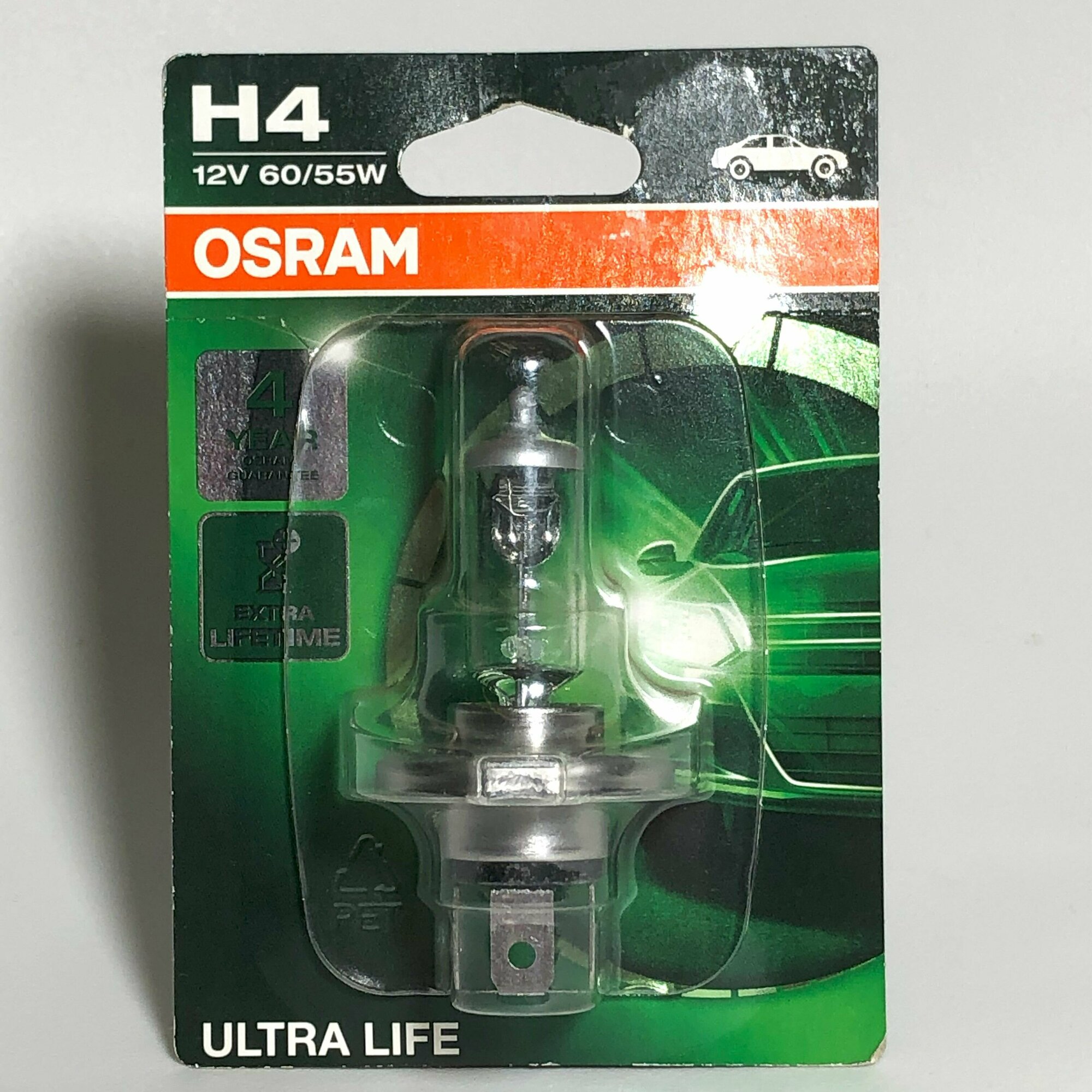 Автомобильные лампы головного света OSRAM ULTRA LIFE не знают себе равных, когда речь заходит о долговечности. Они впечатляют своим сроком службы: по сравнению по стандартными галогенными лампами они служат до четырех раз дольше, что эквивалентно 100000 км пробега.