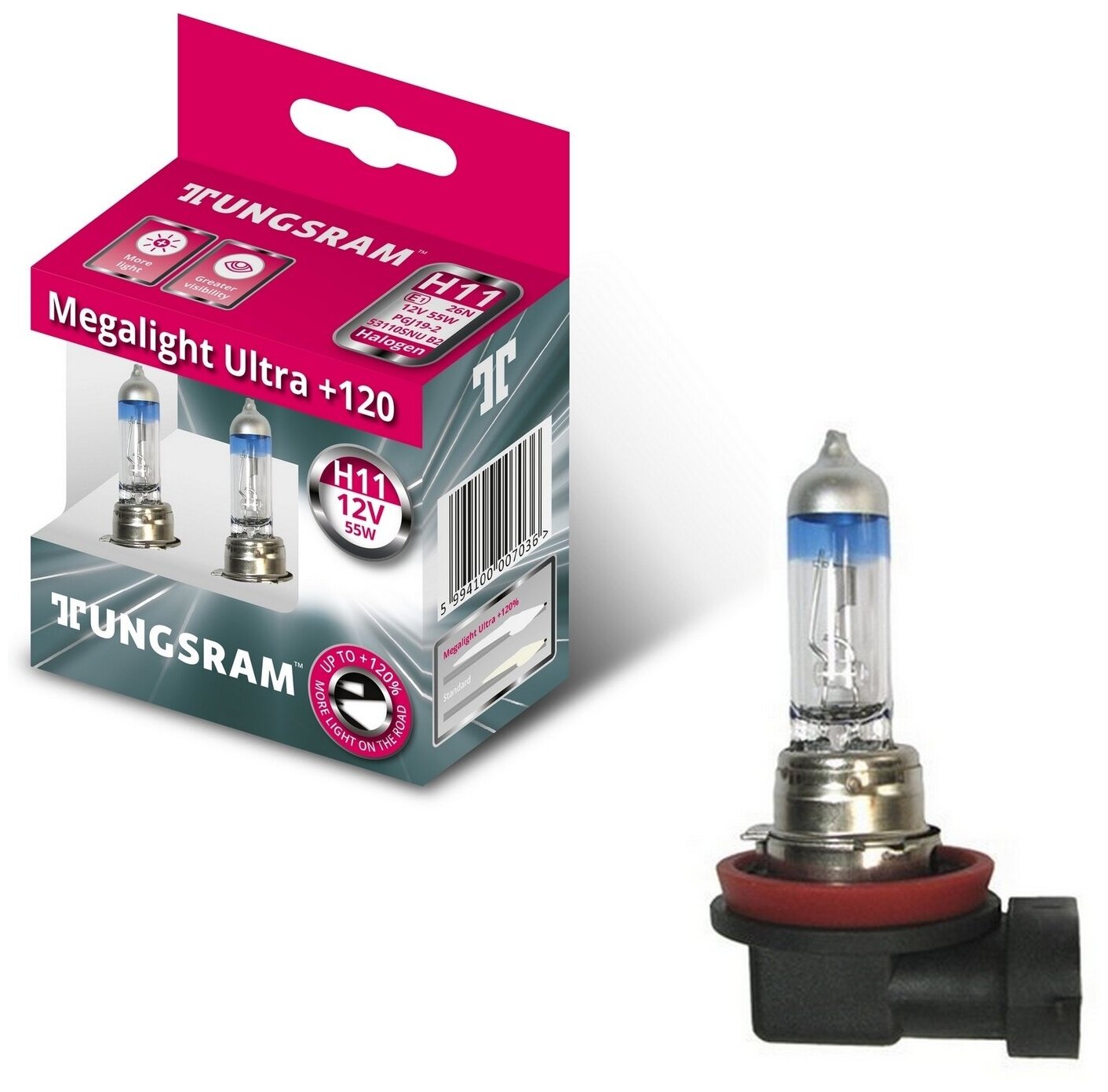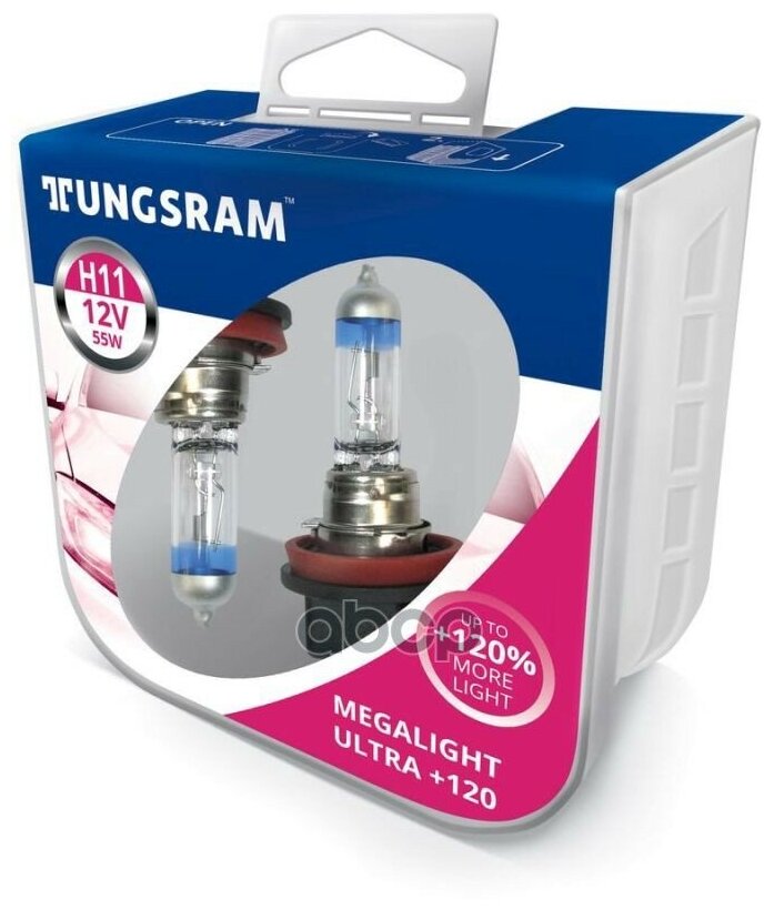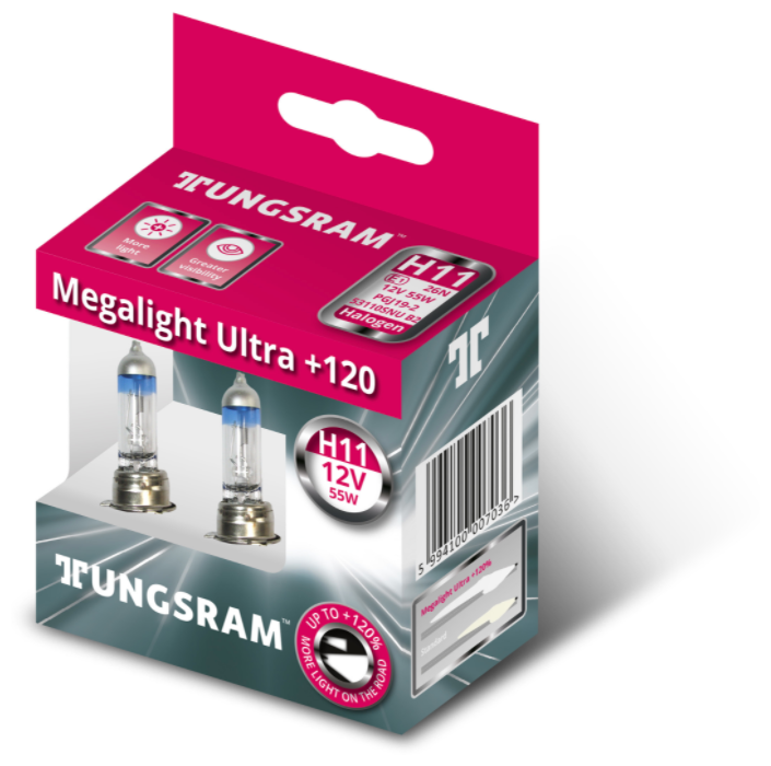 Лампа автомобильная Megalight Ultra +120. До 120 % больше света на дороге: максимальная безопасность благодаря высочайшим эксплуатационным характеристикам.