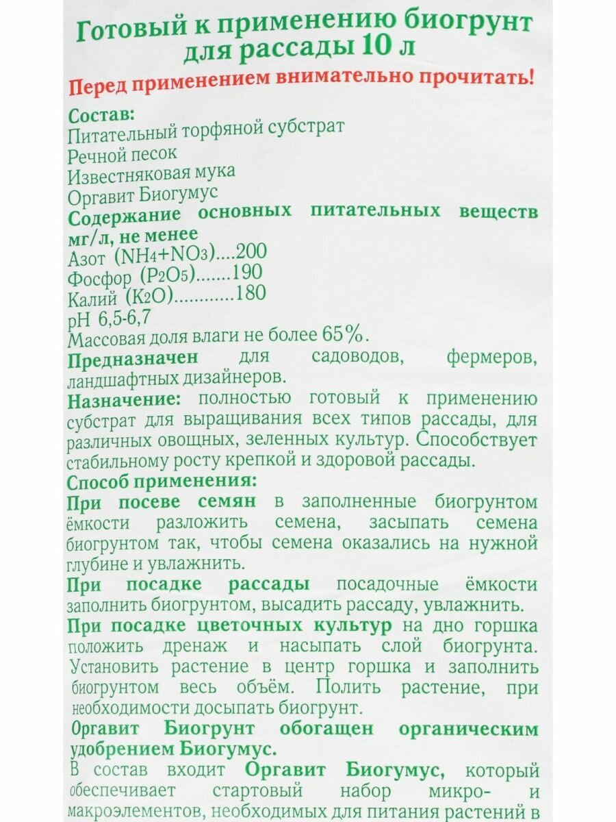 | Состав | Питательный торфяной субстрат, речной песок, удобрение биогумус |