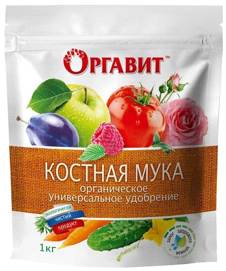 Удобрение Оргавит костная мука - натуральный источник хлора, железа, марганца, фосфора, серы, йода, натрия, меди, цинка, других макро и микроэлементов, витаминов. Органическое удобрение раскисляет почву, укрепляет корневую систему, стимулирует рост, активизирует цветение, повышает урожайность, улучшает вкусовые качества плодов.