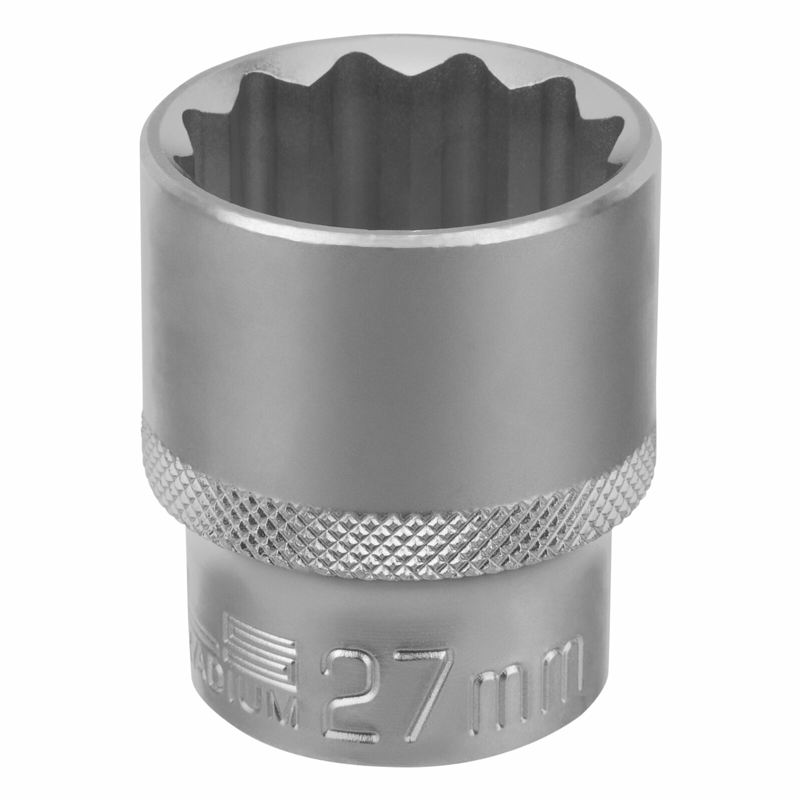 Головка торцевая, 27 мм, 12-гранная, CrV, под квадрат 1/2", хромированная// Stels