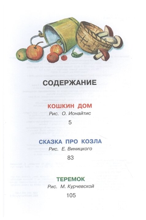 В нашу книжку вошли три сказки-пьесы С. Маршака — "Кошкин дом", "Сказка про козла" и "Теремок". Все они написаны по мотивам русского фольклора, но С. Маршак переработал и дополнил знакомые сюжеты, создав самобытные произведения. Драматическая сказка "Кошкин дом" так полюбилась публике, что и по сей день является одной из самых популярных пьес в детских театрах!