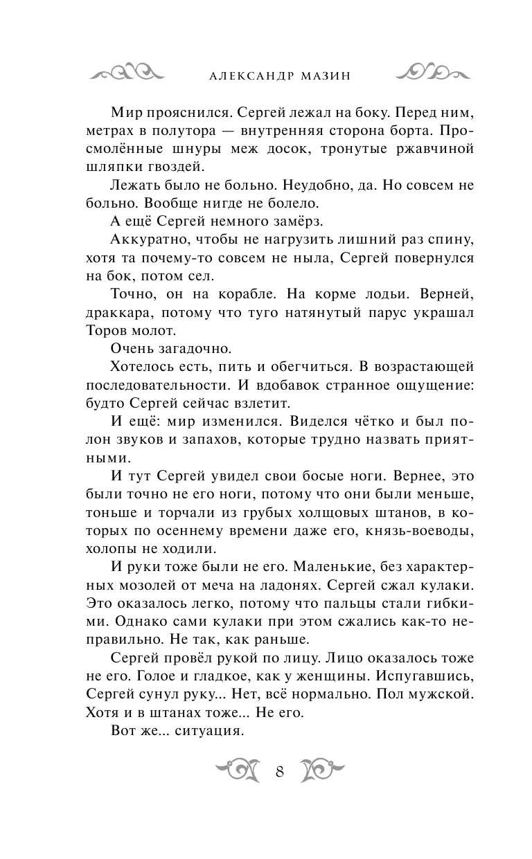 Спустя время Александр Мазин даёт нам вновь насладиться его серией «Варяг». Начало очень интригующее, хоть и жаль было расставаться со старыми знакомыми персонажами, чей путь ещё не был окончен, но, однако не для Сергея Духарёва. Стоит отметить, что Мазин – один из редчайших авторов книг в жанре «попаданцы», в которых с большой точностью отображен быт, культура и исторические события жизни славян и Руси. Здесь не встретишь «чуши», которая, на мой взгляд, очень присуща этому жанру. Каждая книга насыщена любовью автора, с первых страниц заметно, насколько Александр Мазин заинтересован в правильном написании своих книг.
