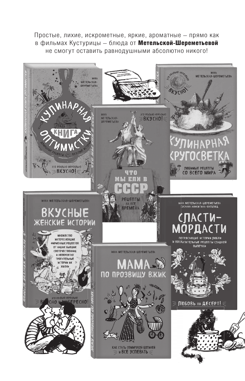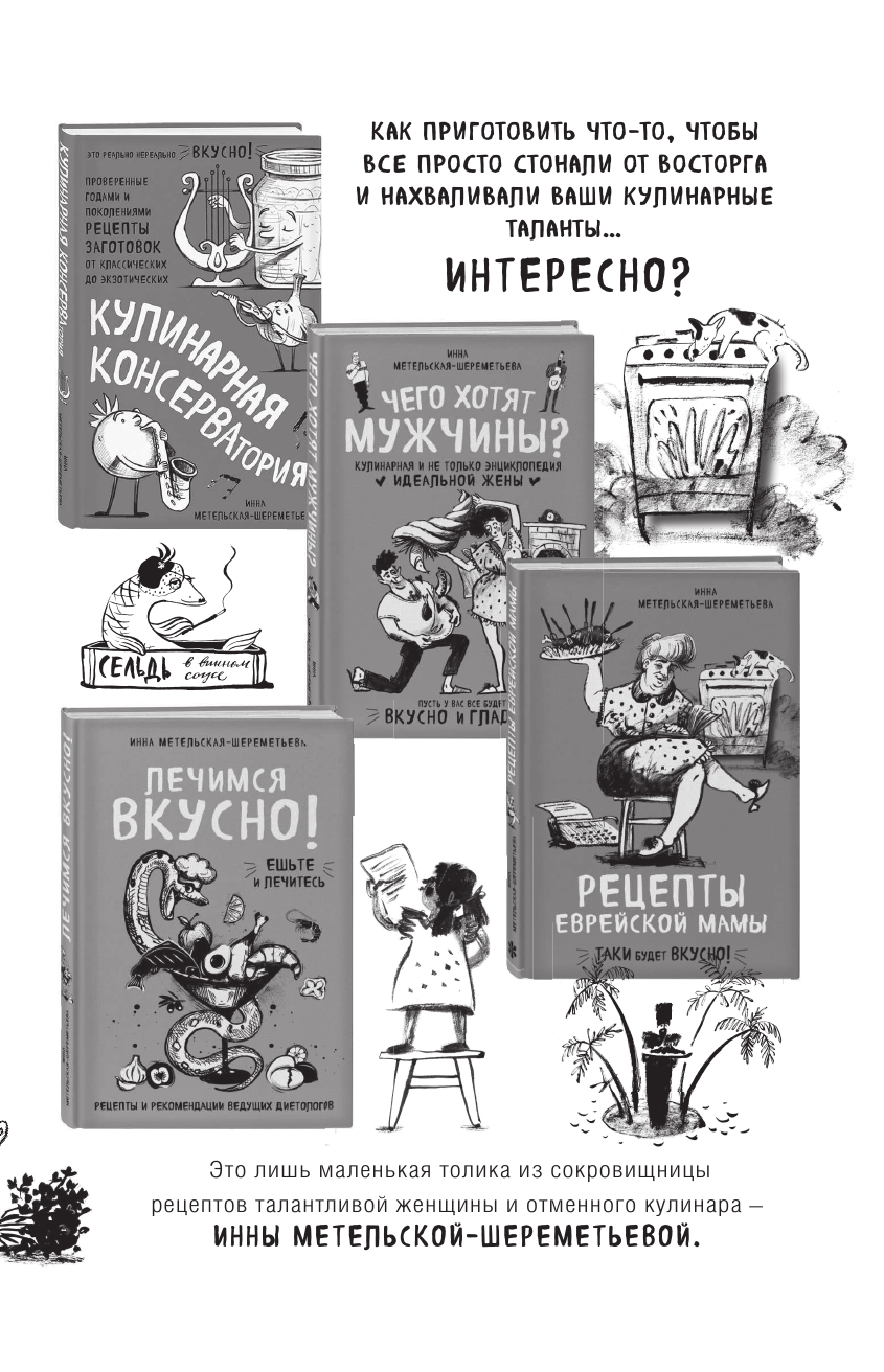 Новая книга известнейшей кулинарной писательницы Инны Метельской-Шереметьевой - это яркое и увлекательное продолжение бестселлера "Рецепты еврейской мамы", вышедшей несколько лет назад и непохожей на другие книги замечательного домашнего повара и талантливой рассказчицы.