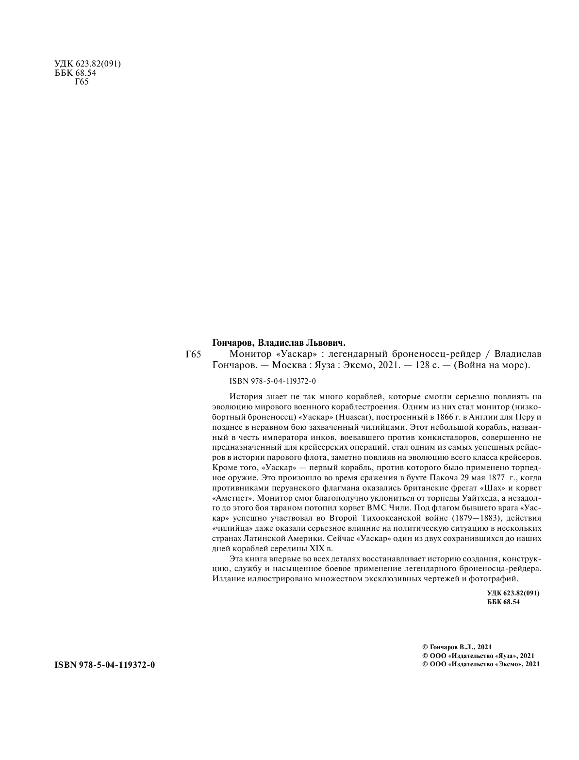 Монитор «Уаскар». Легендарный броненосец-рейдер (Гончаров Владислав Львович); ООО "Издательство "Эксмо", 2021
