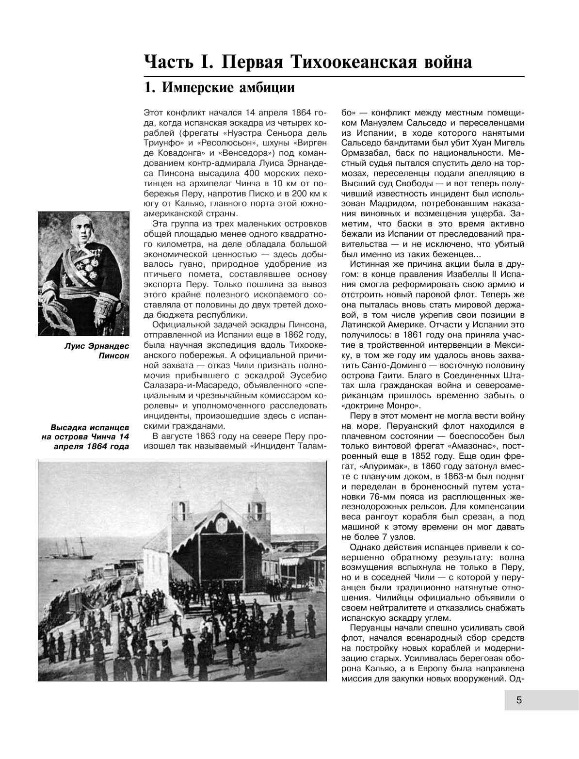 Однако вышеперечисленные недостатки – частности. Главный минус – это попытка впихнуть в одну книгу и историю корабля, и историю войн тихоокеанских стран Южной Америки. В «Барбароссе» эта мешанина тоже есть, но в целом написана лучше. Здесь же мы пытаемся и описать сухопутные войны, и политическую обстановку в странах участницах, не забыв указать, кто и каким образом стал президентом, кто куда убежал.