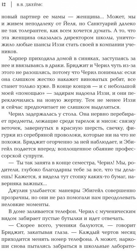 это, по правилам, определяется, когда подростку исполняется 13 лет и проводится обряд Определения, но нашей главной подозреваемой этот Дар не достался (а может и достался, тк до "кто же убийца" я еще не дочитала)). Герои прописаны ярко, матери погибшего сына сочувствуешь, сопереживаешь - эмоции переданы очень эмоционально. Читается легко, атмосфера городка "Санктуарий"- затягивает. Сюжет динамичен, держит в напряжении, затягивает и интригует, невозможно отвлечься.. Книга оформлена прекрасно, бумага приятная, белая. Это мой второй роман, из серии Mainstream.Триллер и я очень довольна!