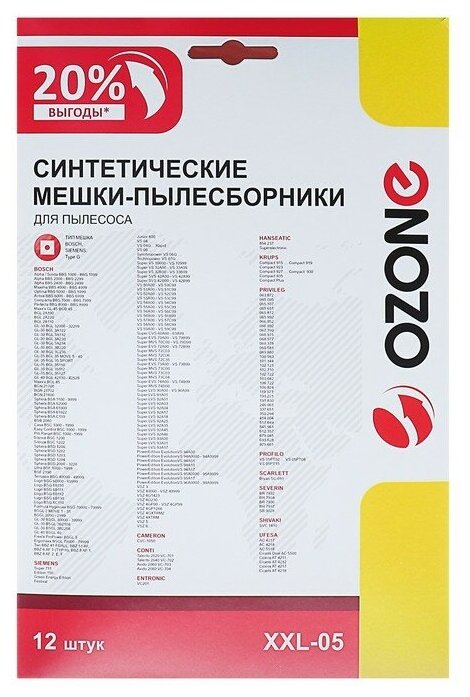 Мешки-пылесборники Ozone XXL-05, 12 шт+ 2 микрофильтра