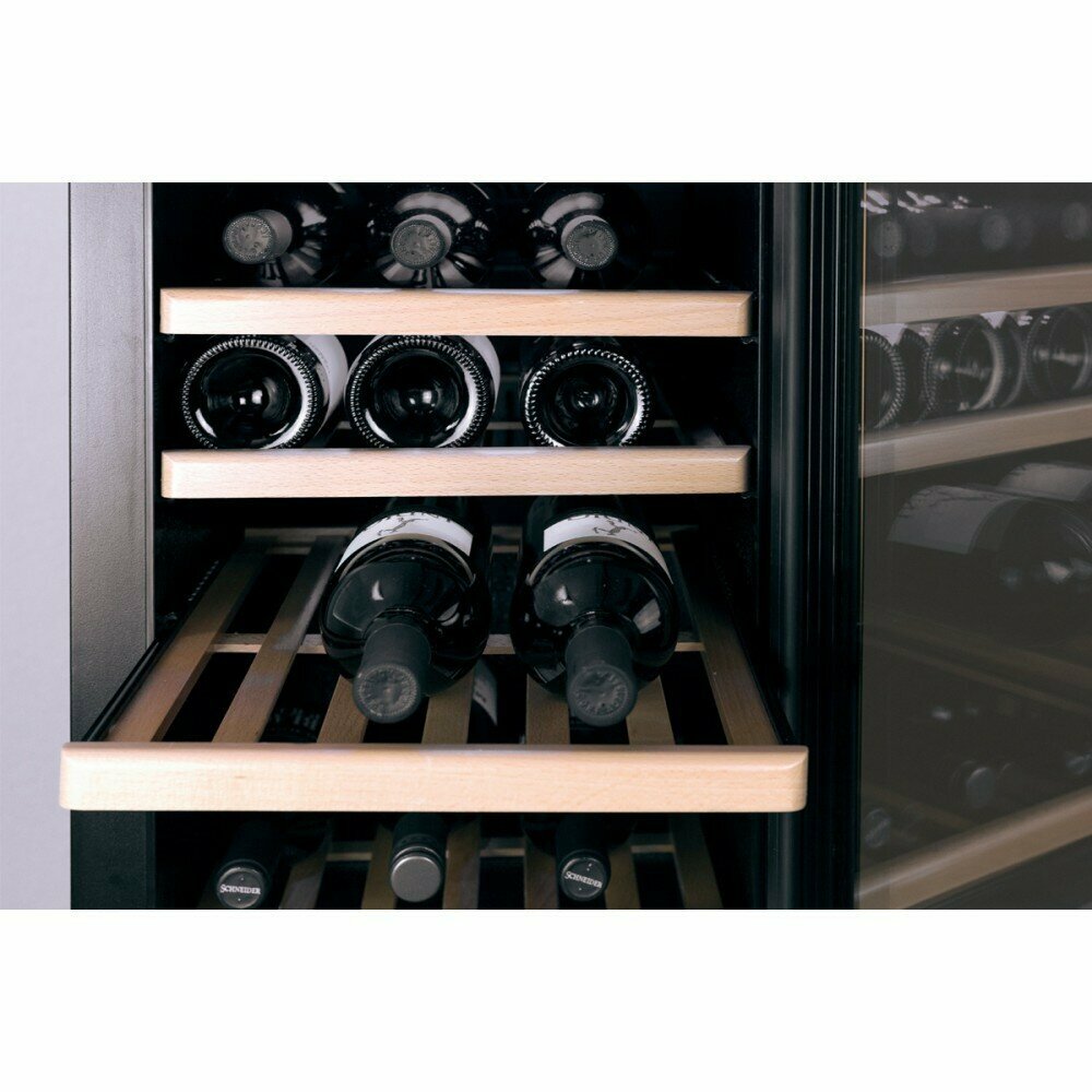 | Семь съемных полок из дерева предназначены для правильного хранения вина | бутылки кладутся горизонтально (вместительность 38 бутылок). Управление осуществляется при помощи двух сенсорных панелей внутри холодильника. Регулировка температурных показателей с шагом в 1C происходит нажатием 8743; и 8744;. Управление внутренним освещением возможно при помощи кнопки Свет. Красивая подсветка силуэтов бутылок синим цветом, обеспечивается за счет светодиодных панелей. Встроенные светодиоды не нагреваются, и внутренний микроклимат остается максимально благоприятным для хранения бутылок. |