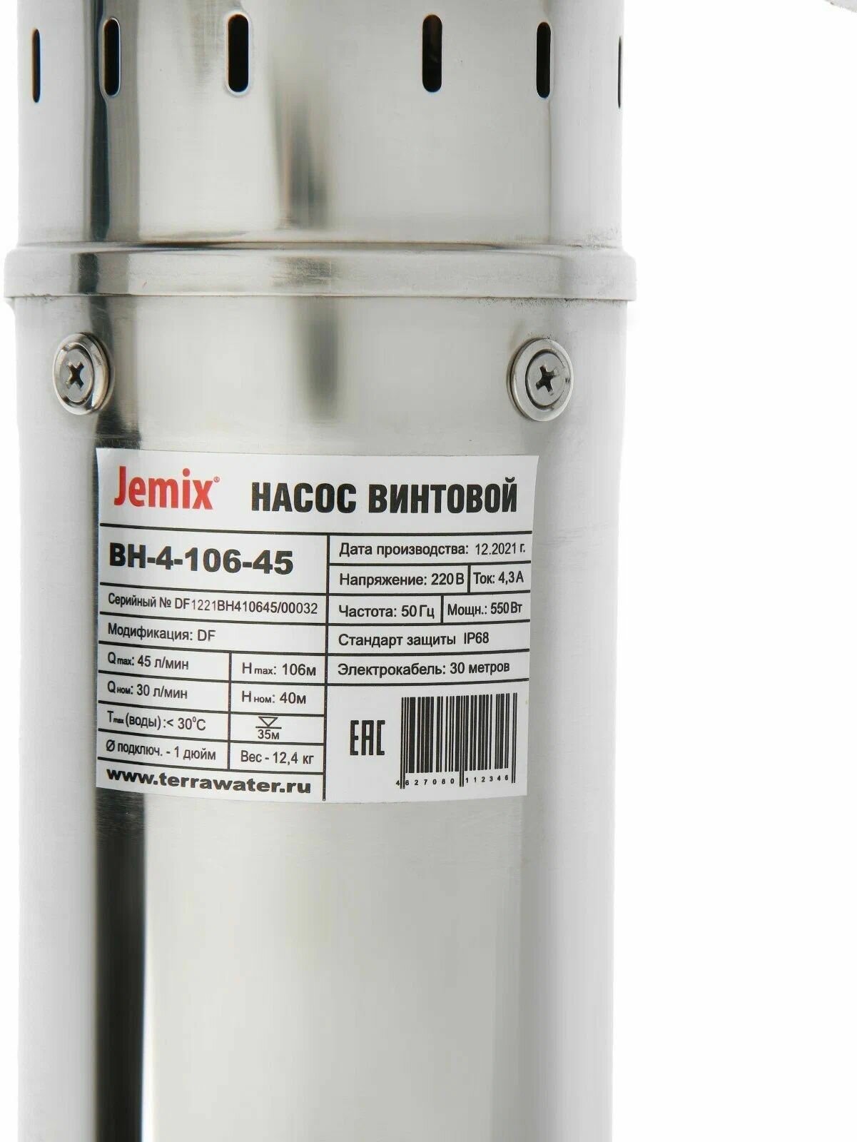 Скважинный насос Jemix (Джемикс) необходим для случаев индивидуального водоснабжения, когда в наличии нет других источников воды. Для контроля положения насоса под водой может понадобиться установить реле давления, а то и гидроаккумулятор. Корпус и винтовой шнек сделаны из нержавеющей стали, чтобы длительное время выдерживать воздействие воды.