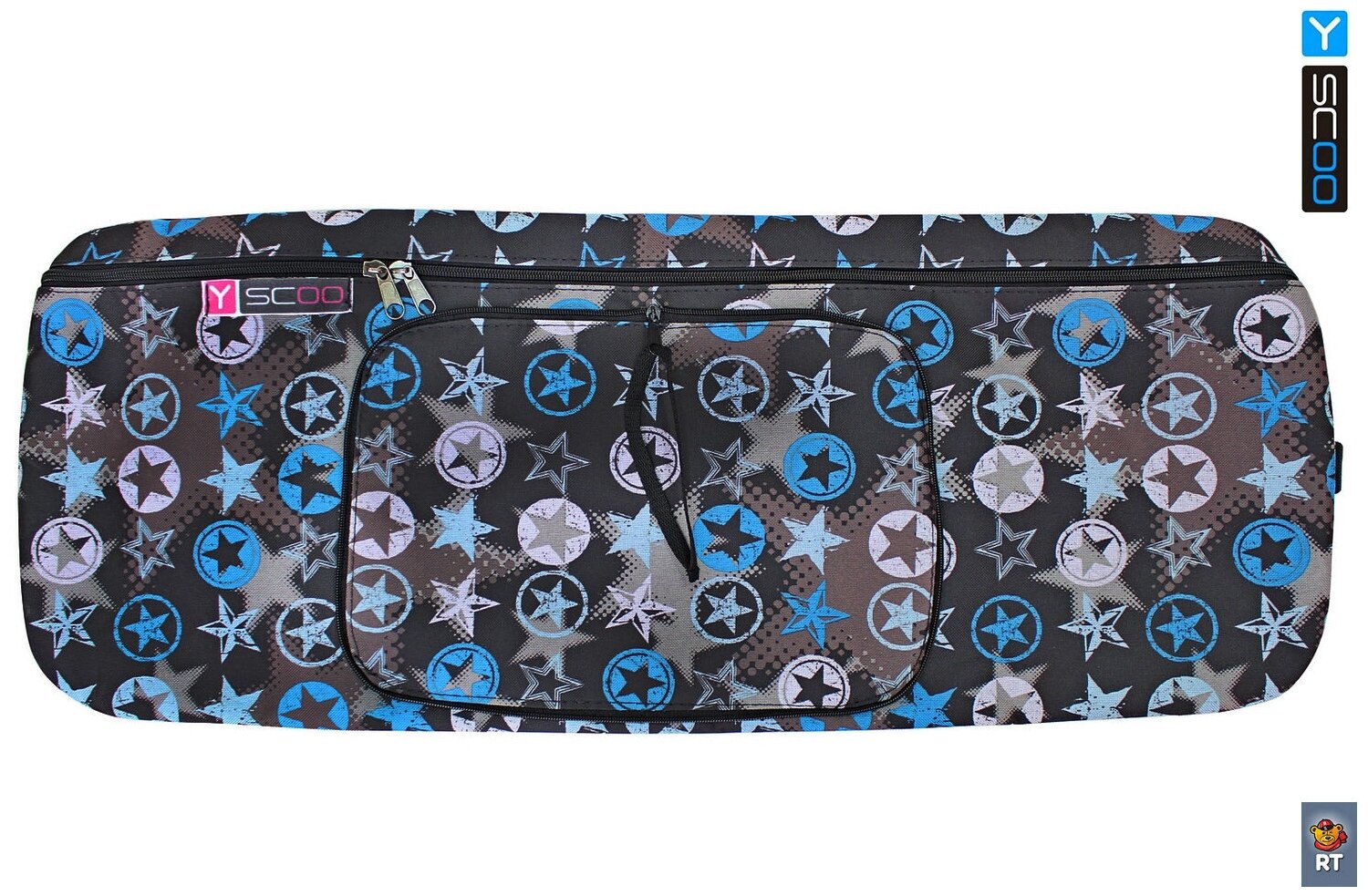 Уникальность чехлов Y-SCOO - прочная ткань ПВХ и очень широкий, прочный и надежный замок-молния. 2х-замковая усиленная молния расстёгивается максимально, что позволяет легко и быстро уложить самокат в чехол. Универсальный чехол с двойным усиленным плечевым ремнем- лямкой создан по принципу пляжной сумки, которая выдержит любой вес. Такую сумку- чехол очень удобно носить на плече. На месте для плеча- мягкий широкий наплечник на широкой липучке.