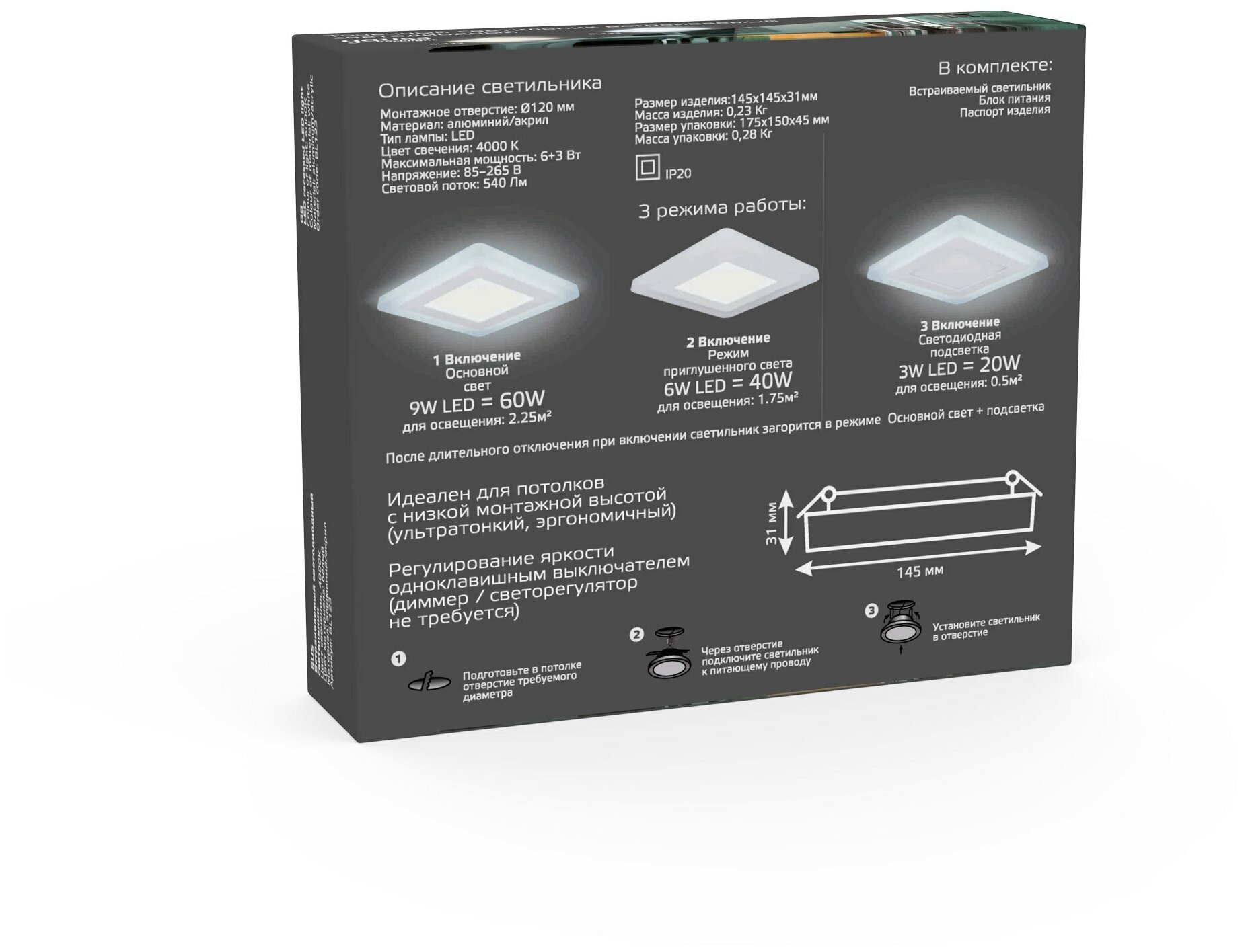 Устройство представлено в двух форм-факторах - квадрат и круг, что расширяет область применения. Не стоит беспокоиться и о цветовой температуре, так как светильники имеют два варианта - 4000К/3000К. Ваше пространство может преобразиться как теплым оттенком, так и приятным холодным светом.