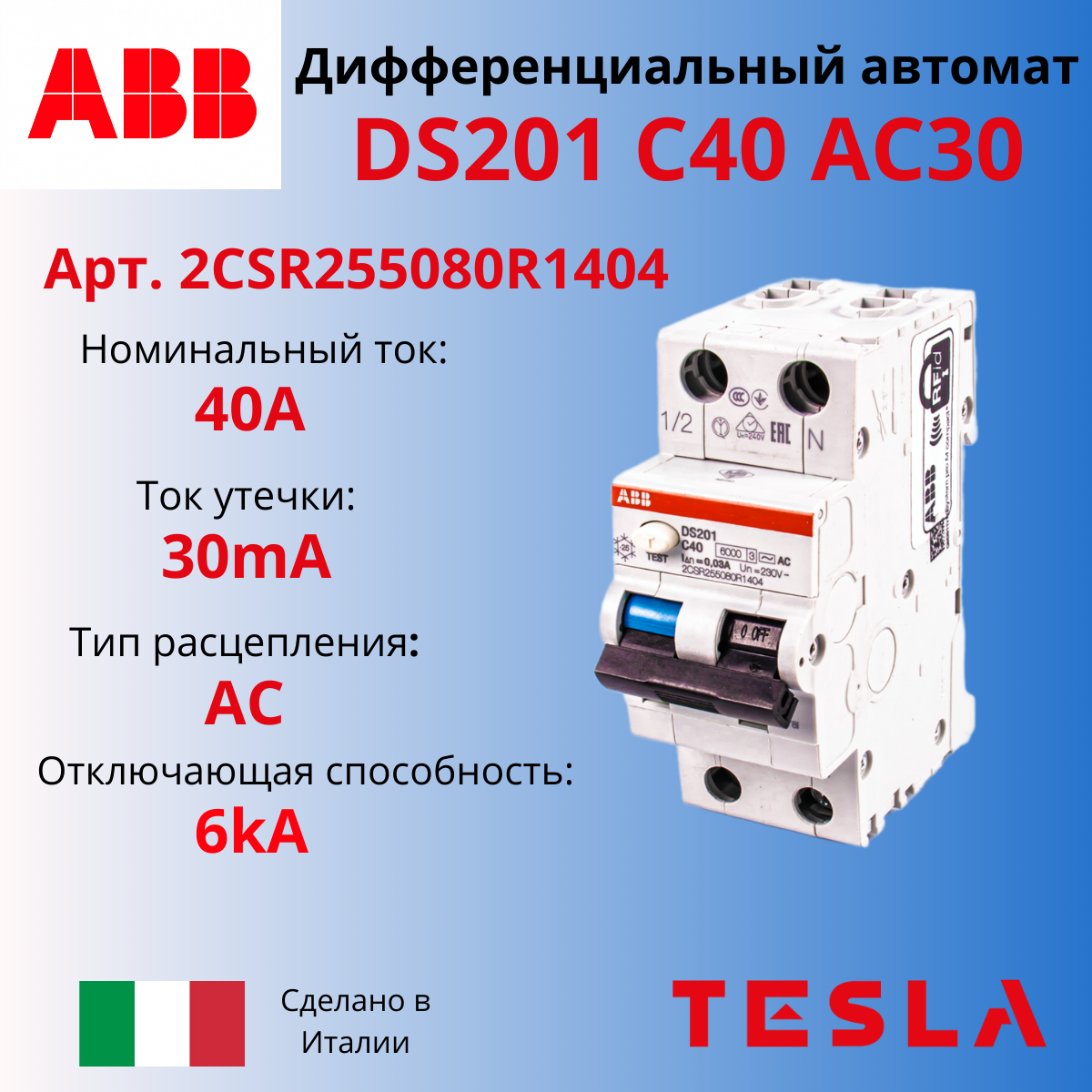 Автоматический выключатель дифференциального тока АББ, с номинльным током 40 А,серии DS201 RCBO 1P+N шириной 2-модуля предназначен для защиты конечных однофазных сетей от перегрузок и коротких замыканий. Защита от воздействия синусоидальных переменных токов замыкания на землю. Защита от непрямых контактов и дополнительная защита от прямых контактов с чувствительностью 30 мА.