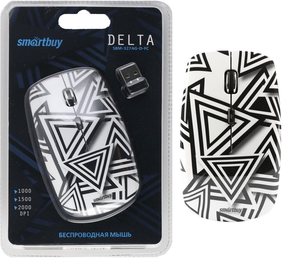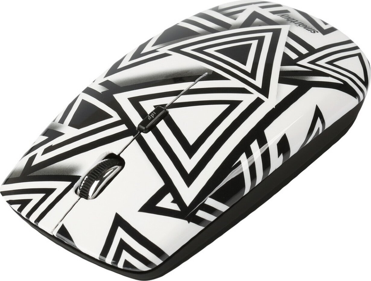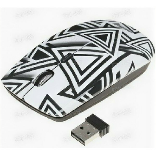 Беспроводная компьютерная мышь с рисунком на корпусе в виде треугольников. Благодаря симметричной форме, отлично подойдет для использования левой и правой рукой. Кнопка переключения DPI позволяет одним нажатием менять и выбирать удобную скорость курсора.
