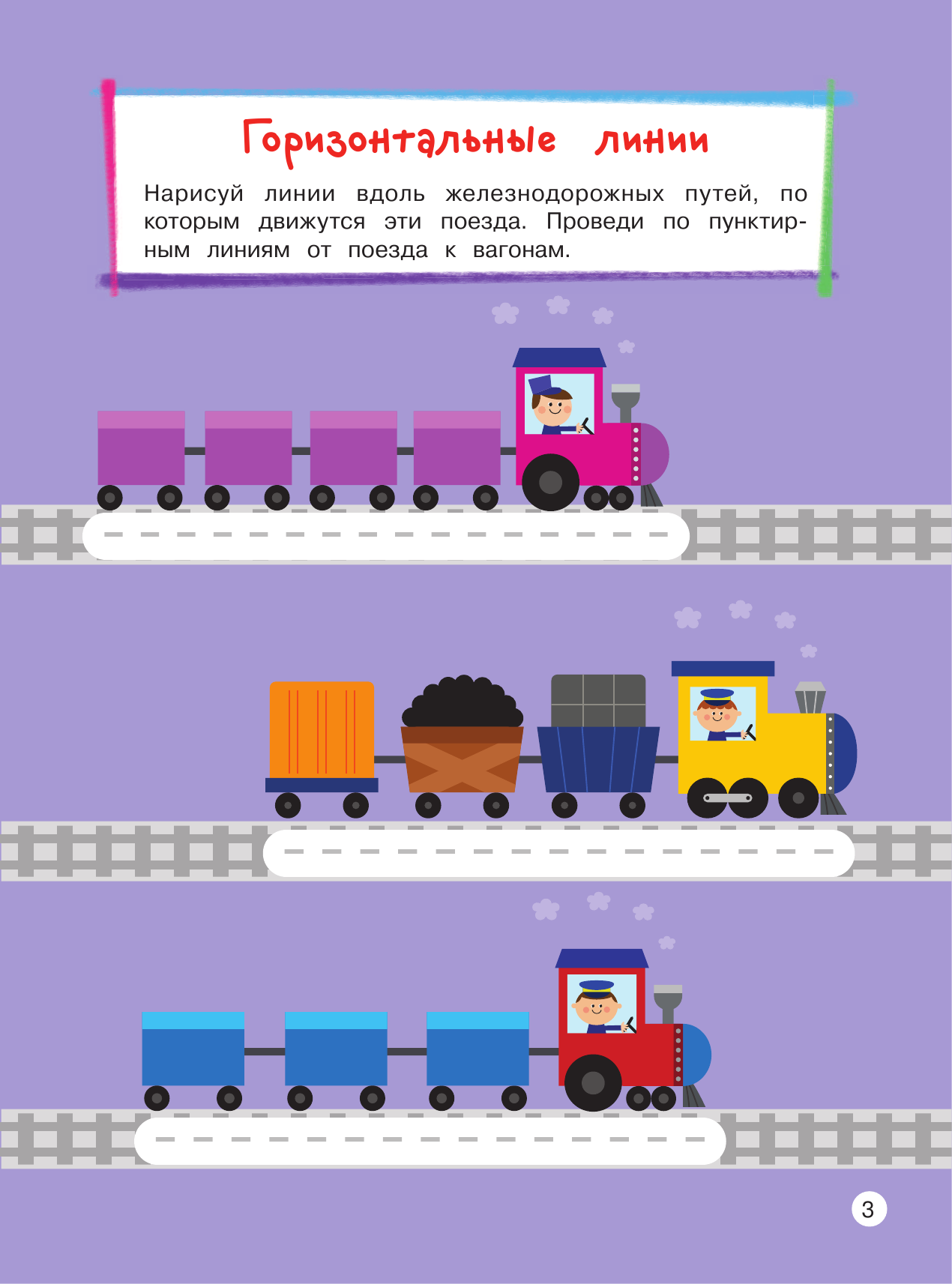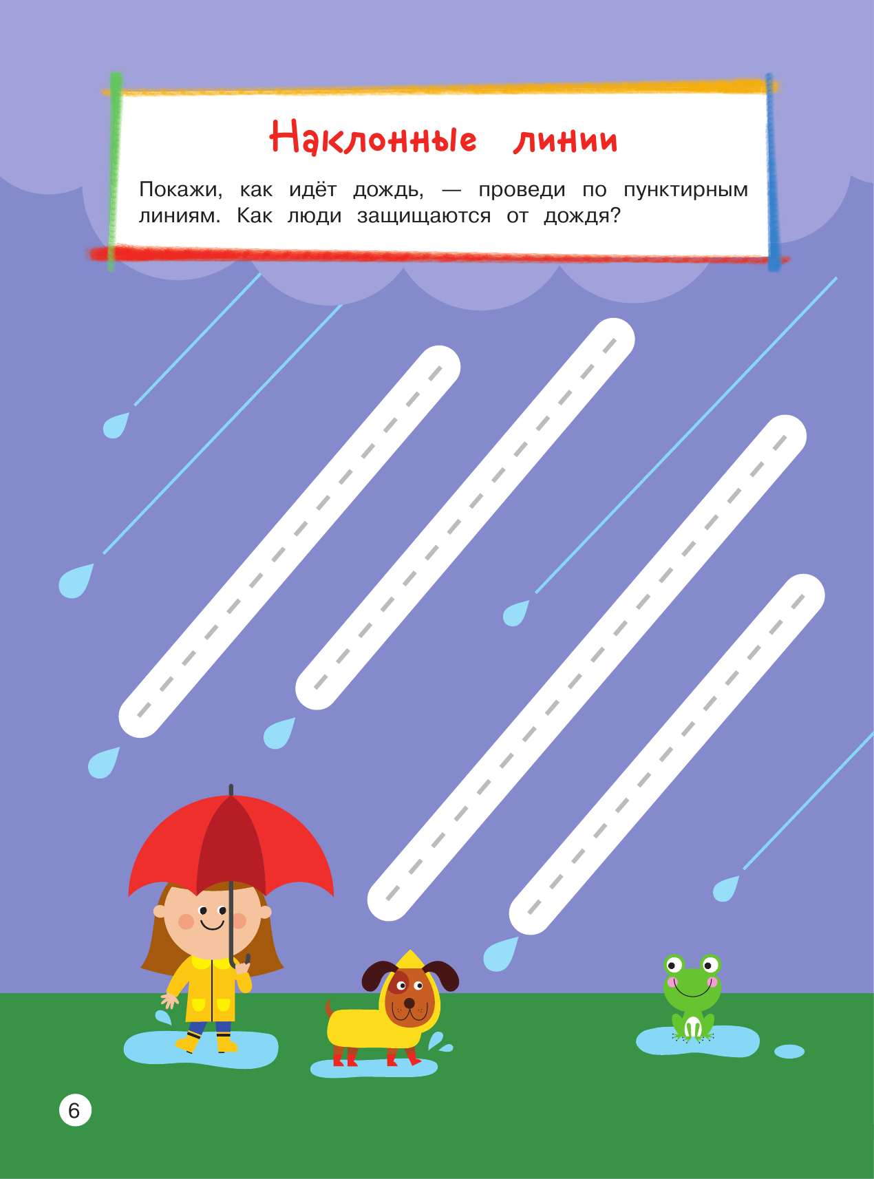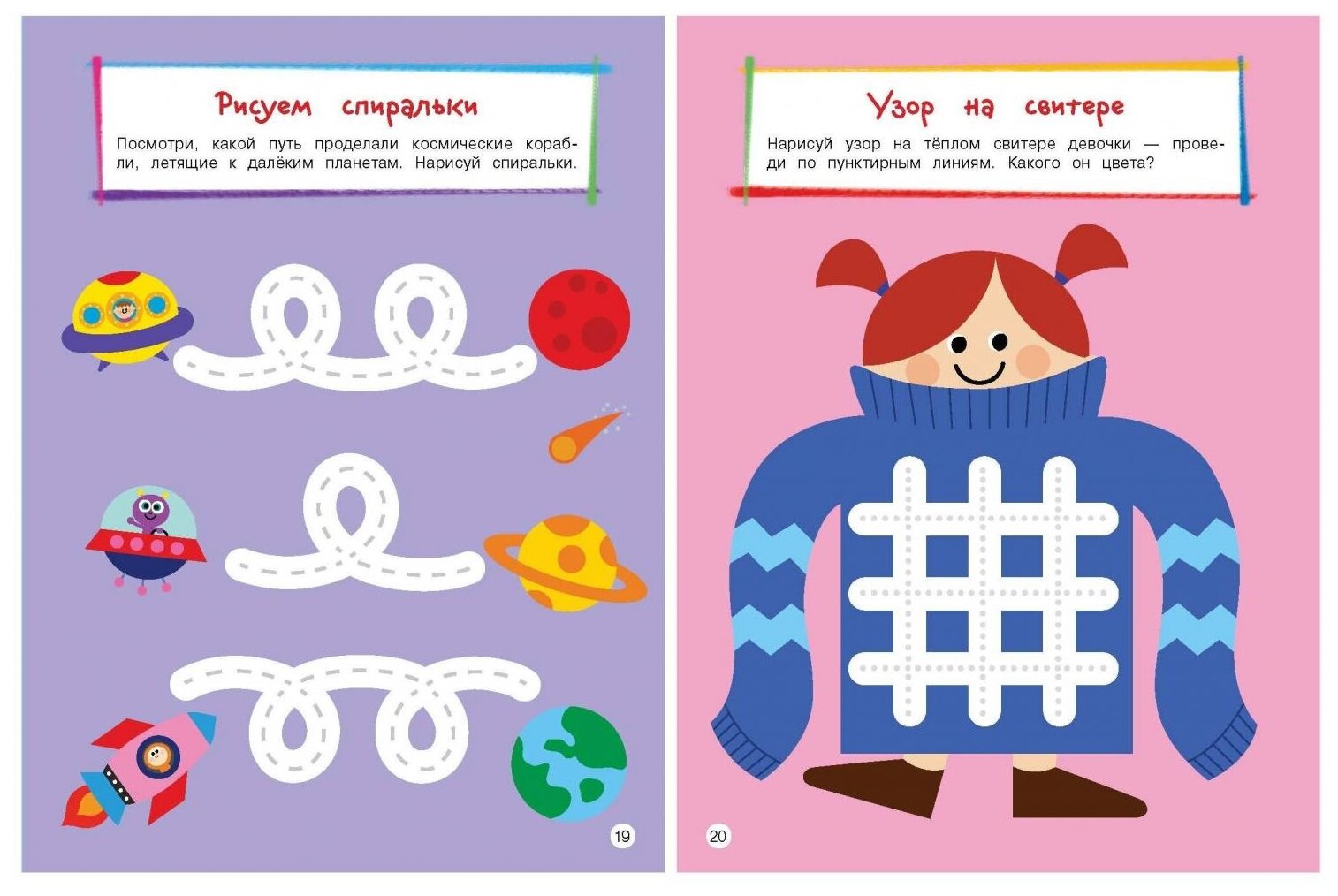 Выполняя интересные занимательные задания, малыш познакомится с различными типами линий и сможет самостоятельно нарисовать узор на свитере; будет обводить игрушки и другие предметы по пунктирным линиям и штриховать; узнает основные формы и виды углов; пройдёт по запутанным лабиринтам и просто весело проведёт время. Замечательные добрые картинки повысят интерес ребенка к занятиям, а доступность заданий придаст уверенности в себе.