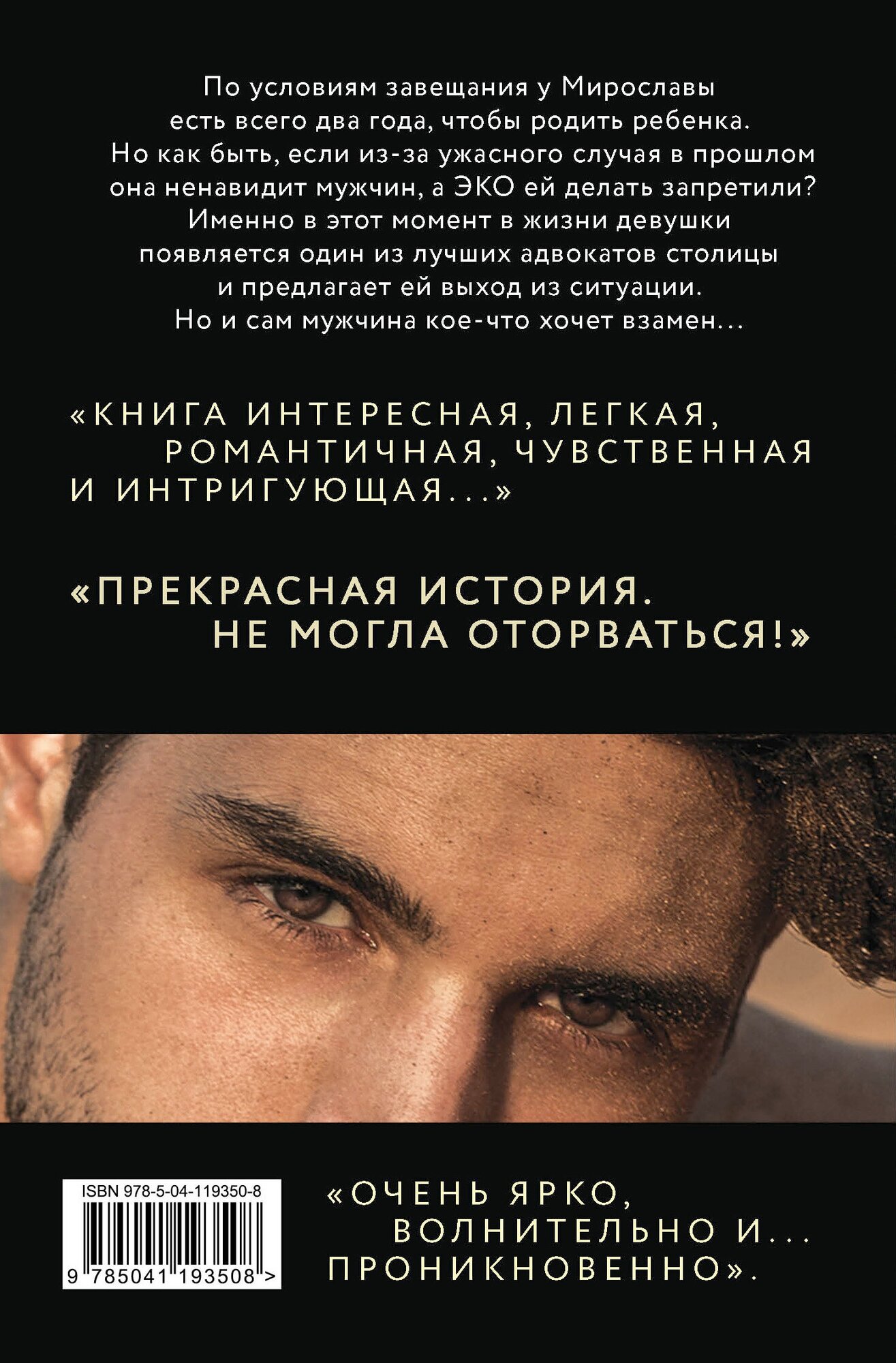По условиям завещания у Мирославы есть всего два года, чтобы родить ребенка. Но как быть, если из-за ужасного случая в прошлом она ненавидит мужчин, а ЭКО ей делать запретили? Именно в этот момент в жизни девушки появляется один из лучших адвокатов столицы, и предлагает ей выход из ситуации. Но и сам мужчина кое-что хочет взамен...