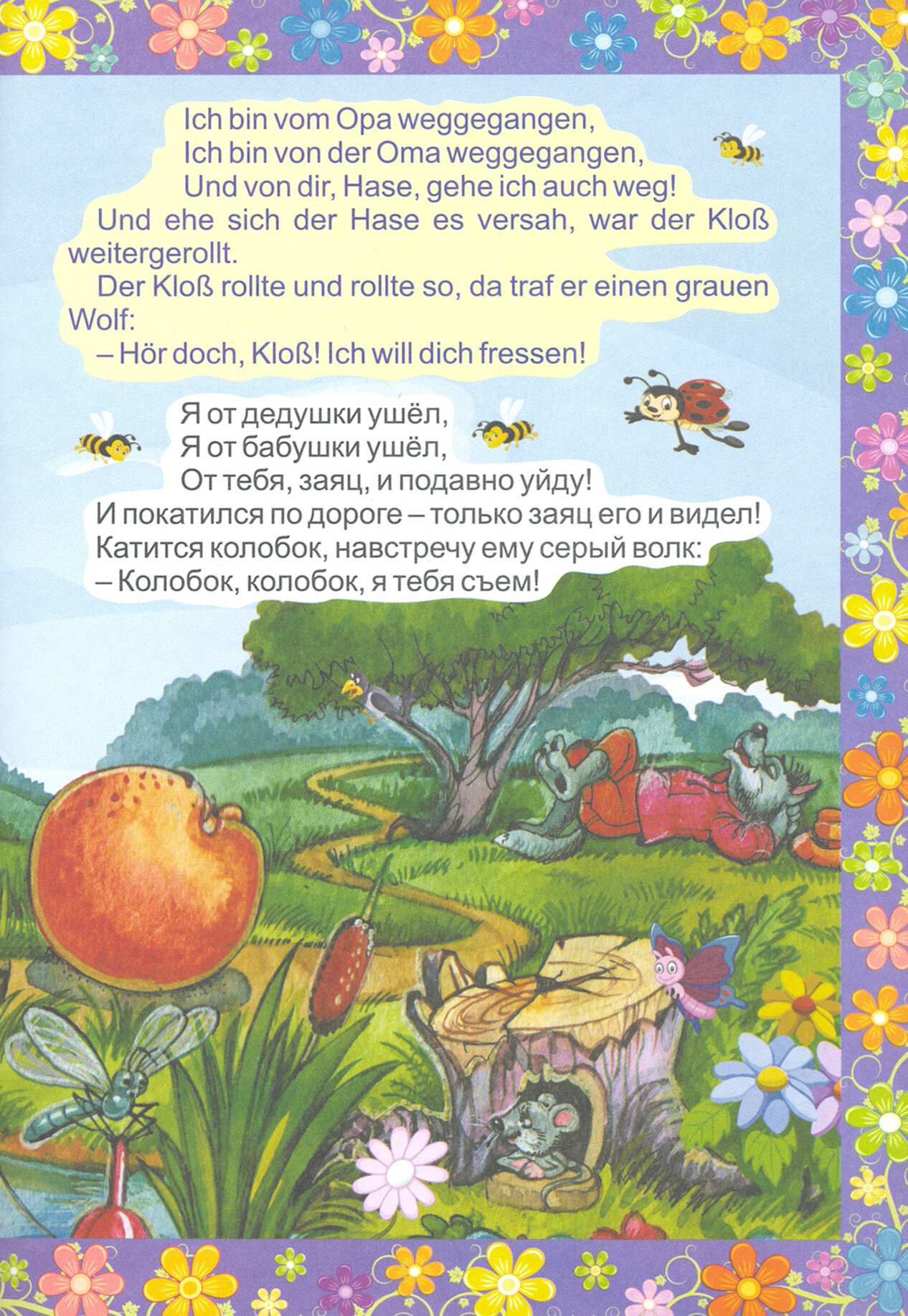 Эта небольшая, красиво оформленная, книжечка даёт нам замечательную возможность учить ребёнка немецкому языку на основе русской народной сказки "Колобок". Представлен текст с параллельным переводом, с играми и заданиями. -