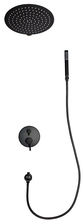 | Комплектация | держатель; документация; душевая стойка; кронштейн для верхнего душа; переключатель потоков; подвесная лейка; ручная лейка; смеситель; шланг для душа |